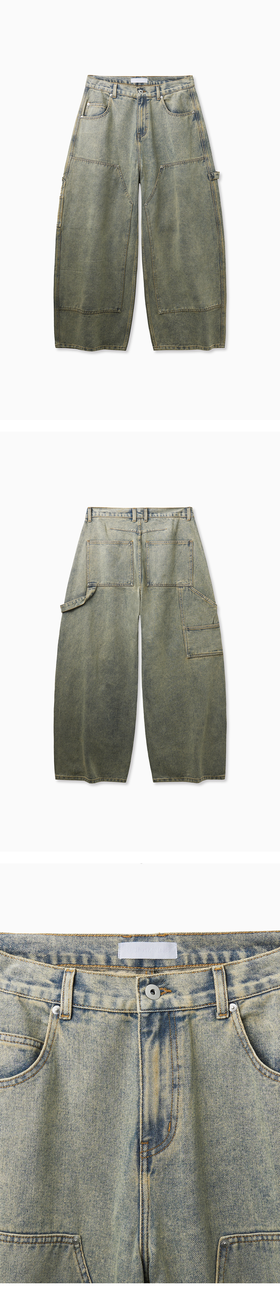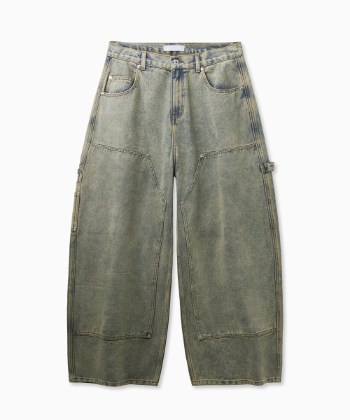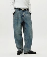 Curved Wide Washing Jeans (Blue)