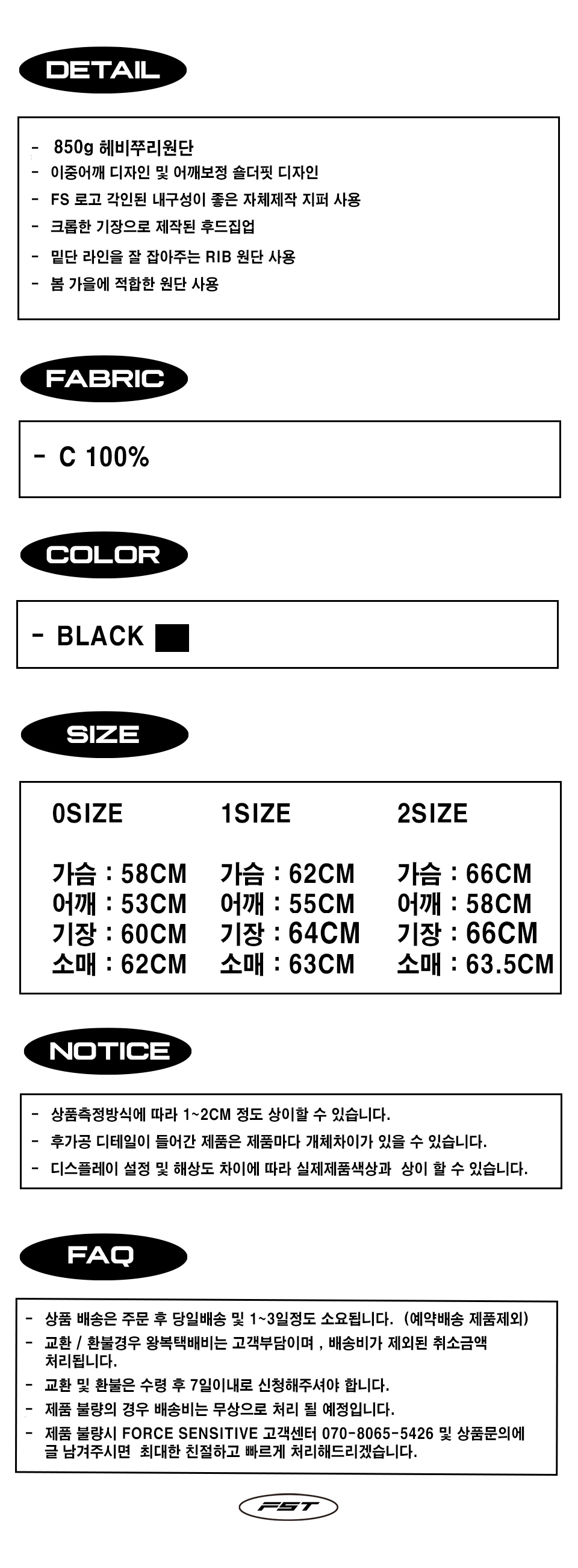 1사이즈 2사이즈 기장 +2cm , 780g > 850g 원단으로 변경되서 발송됩니다.