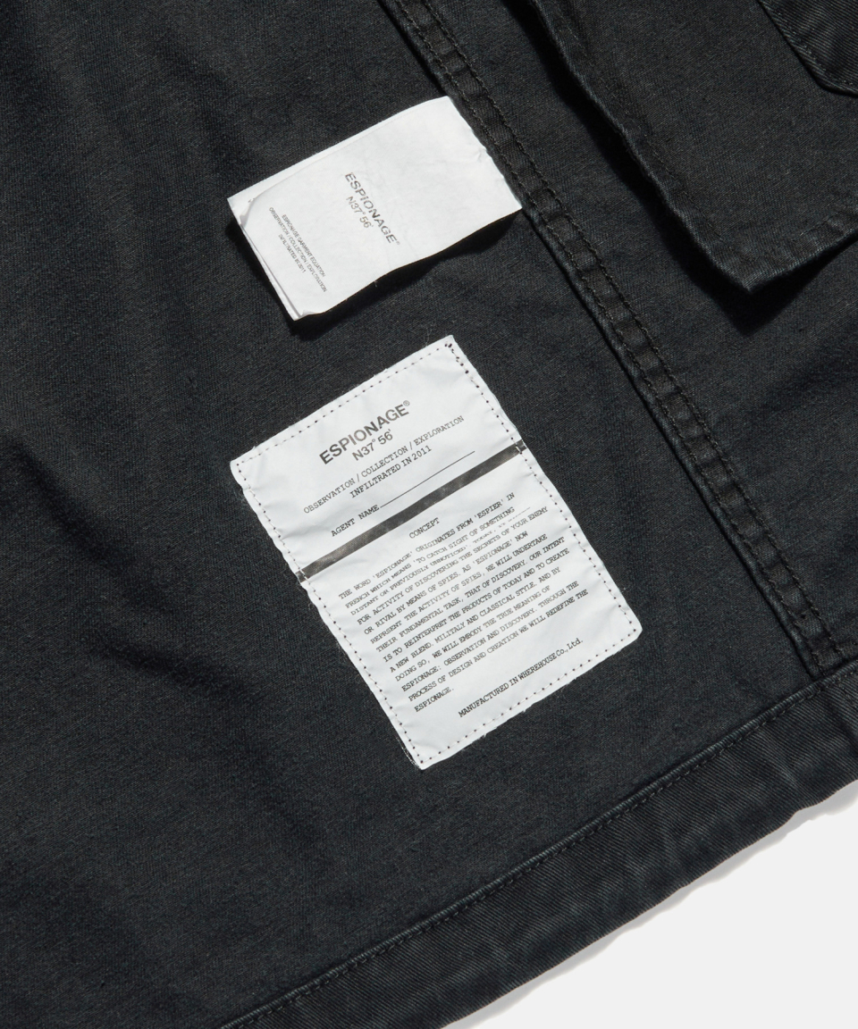 에스피오나지(ESPIONAGE)는 '밖을 보다' '숨겨져 있는 것을 발견한다'는 의미의 고대 프랑스어 ESPIRE에서 유래한 말로 지금은 타국의 비밀 정보를 수집하는 첩보 활동을 뜻하기도 합니다. 첩보 활동의 의미가 적진에서 은밀히 적들의 정보를 빼오는 것을 말하는 것처럼 에스피오나지가 만드는 아이템에는 숨겨져 있는 것을 찾아내는 과정을 포함하고 있습니다. 클래식, 밀리터리, 아웃도어 등 이미 만들어져 있는 의복을 베이스로 우리가 중요하게 생각하는 원단과 부자재, 기술, 핏 등의 요소들을 정확하게 탐구하고 수집해 조합, 재정의 혹은 재해석된 결과물을 만들고자 합니다. 사전적인 의미의 에스피오나지가 가지는 부정적인 첩보 활동의 이미지가 아닌 첩보 활동의 과정, 즉 본질에 대한 탐구와 조사 활동이라는 긍정적인 느낌을 전달하려 하며 수집된 정보를 하나의 작업물로 만들어내는 일련의 과정과 그렇게 완성한 에스피오나지의 아이템을 통해 다시 만드는 과정을 다시 유추하려는 생각들 모두 에스피오나지입니다.