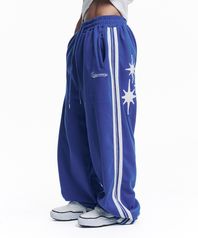 스타 파이핑 트랙 벌룬 스웻 팬츠 - 블루