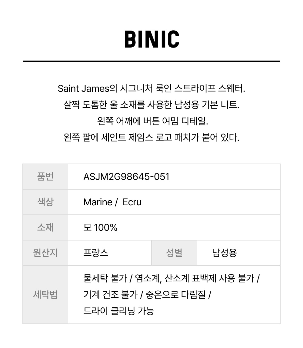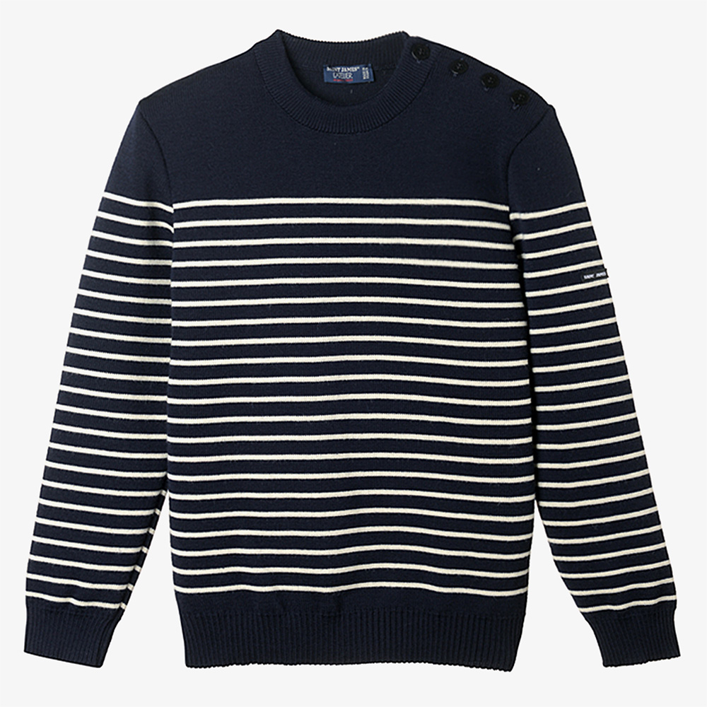 세인트제임스(SAINT JAMES)는 1889년 프랑스 노르망디 몽생미셸만 근처 세인트제임스 지역에서 시작되었습니다. 직접 만들고 염색한 털실 판매를 시작으로, 직접 만든 울로 레옹 지방 어부들을 위한 셔츠를 공급하며 1929년 회사를 설립하였고, 이후 마린 룩의 대명사로 성장하였습니다.