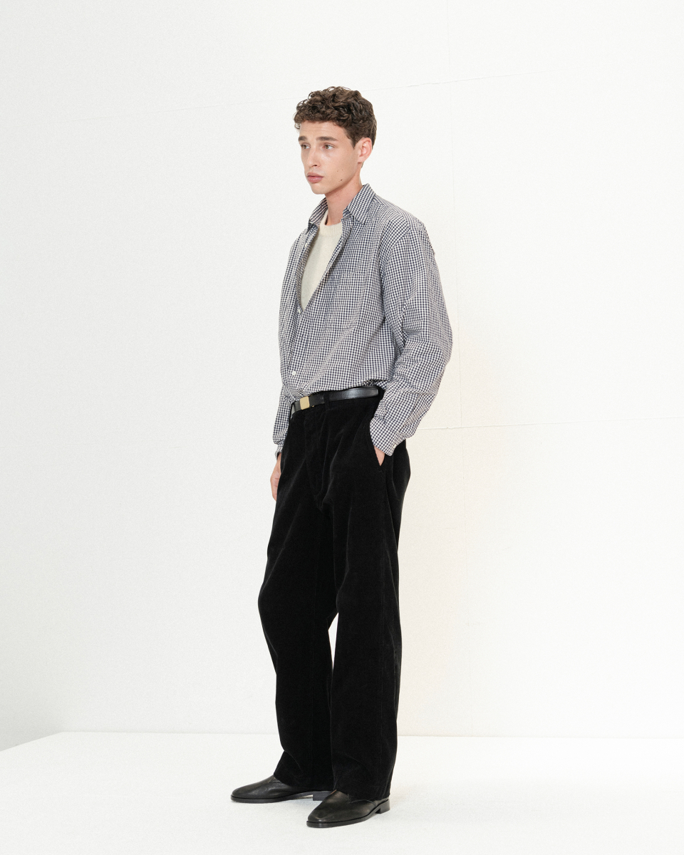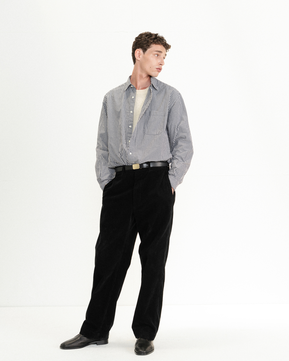 여유로운 실루엣은 편안하면서도 자연스럽게 몸에 감기는 핏을 연출하며, 왼쪽 가슴의 포켓은 실용적인 디테일을 더합니다. 은은하게 빛나는 자개단추는 셔츠의 고급스러움을 한층 더 높여주며, 견고한 내구성을 위해 미국 코츠사의 봉제사를 사용해 완성도를 높였습니다.