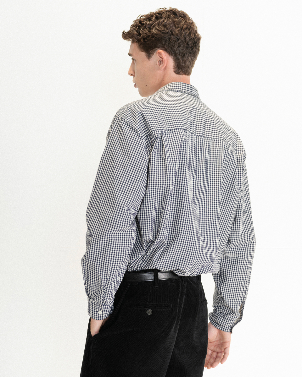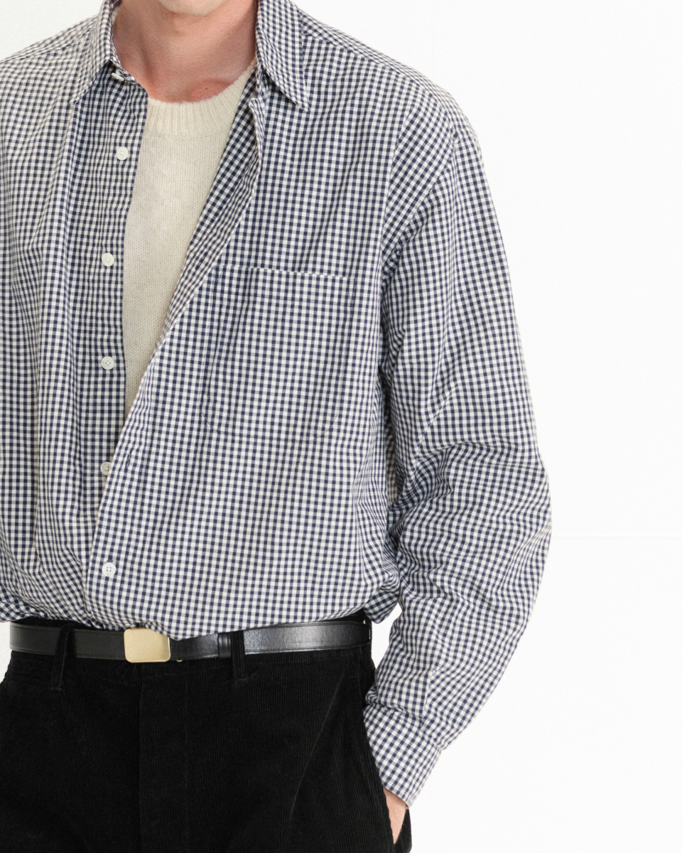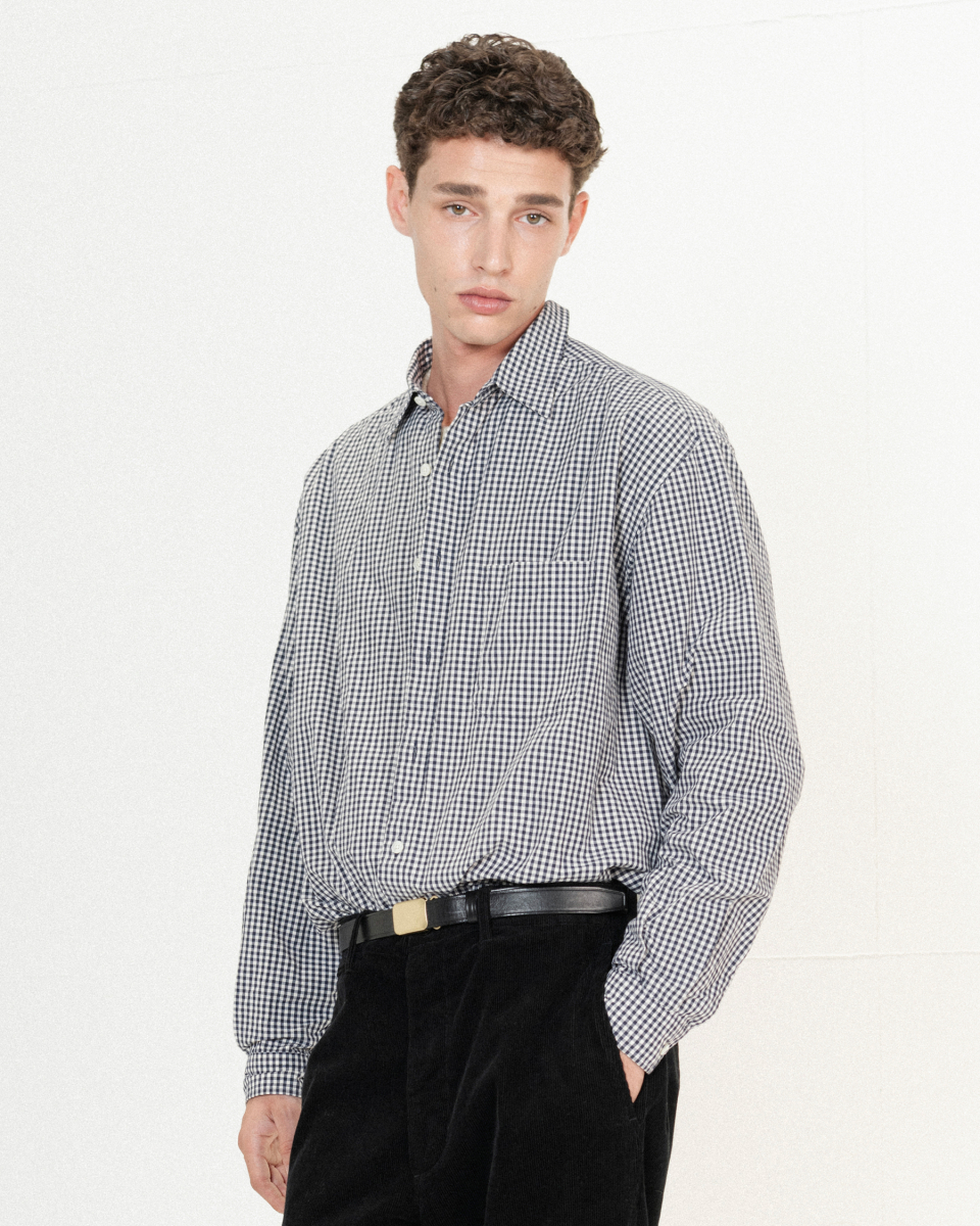 클래식한 깅엄 체크 무늬에 빈티지한 감성을 더해 특별한 매력을 선사합니다. 고밀도로 짜여 얇지만 튼튼한 40수 1합 코튼 100% 타입라이터 워셔 일본 원단을 사용했습니다.