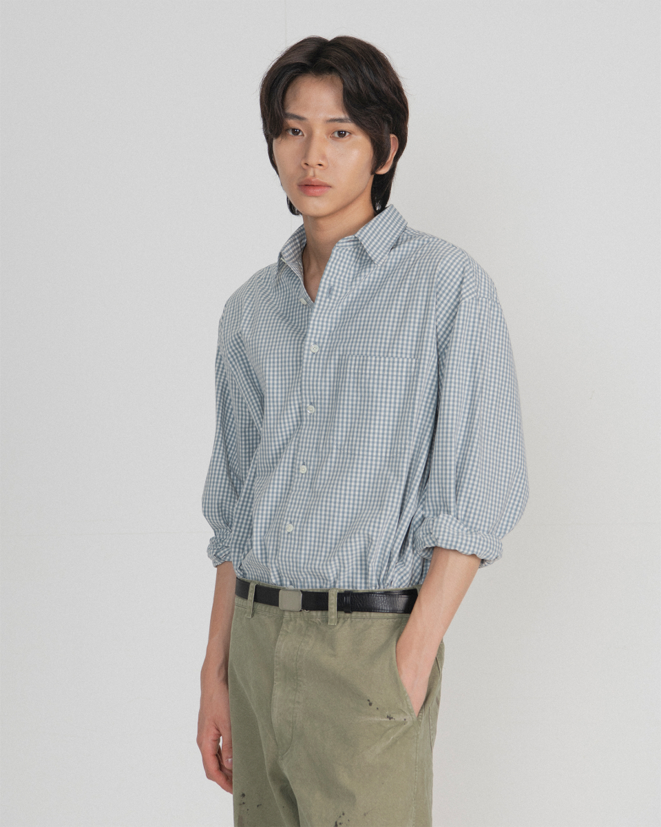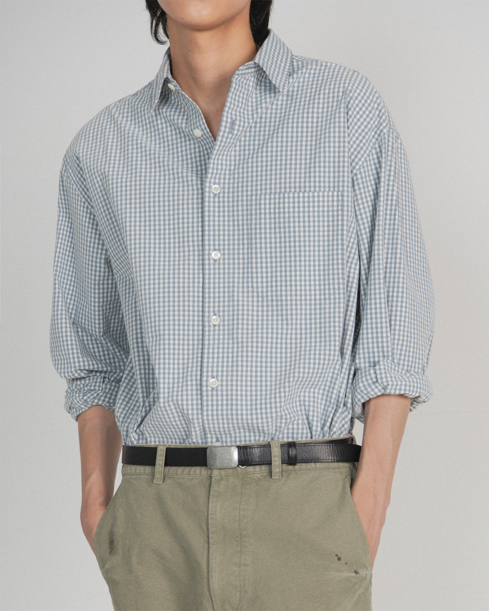 클래식한 깅엄 체크 무늬에 빈티지한 감성을 더해 특별한 매력을 선사합니다. 고밀도로 짜여 얇지만 튼튼한 40수 1합 코튼 100% 타입라이터 워셔 일본 원단을 사용했습니다.