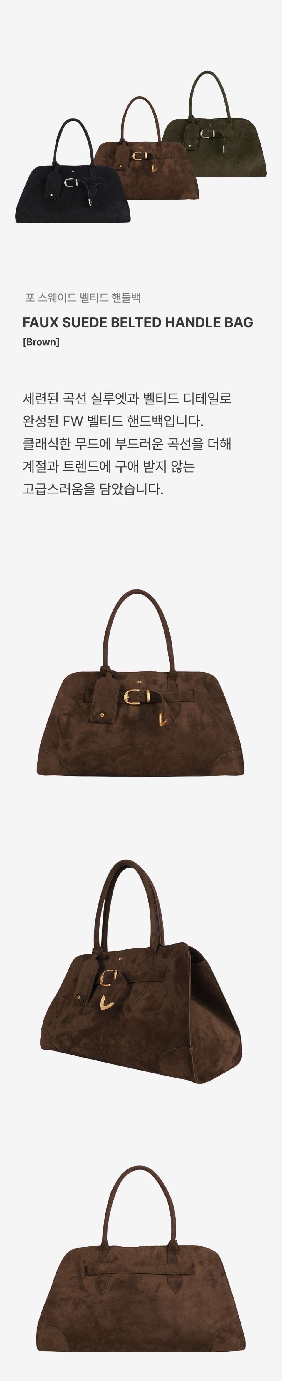 포 스웨이드 벨티드 핸들백 [브라운]