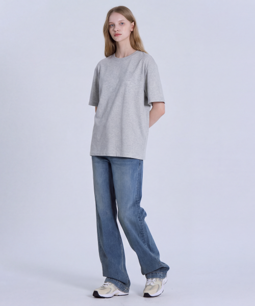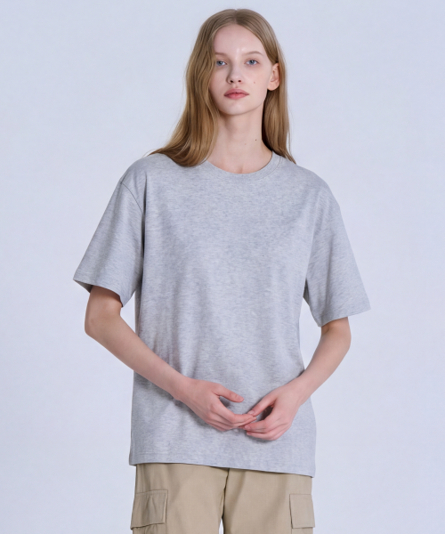 여성 40수 릴렉스핏 크루넥 반팔티셔츠 멜란지그레이 LATS0209