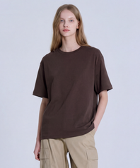 여성 40수 릴렉스핏 크루넥 반팔티셔츠 브라운 LATS0209