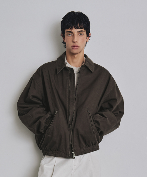 코튼 커브드 워시드 블루종 자켓 브라운 COOSJK042BROWN