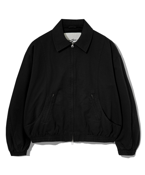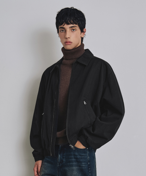코튼 커브드 워시드 블루종 자켓 블랙 COOSJK042BLACK