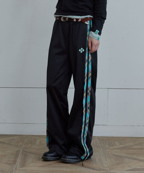 CHECK TRACK PANTS / black