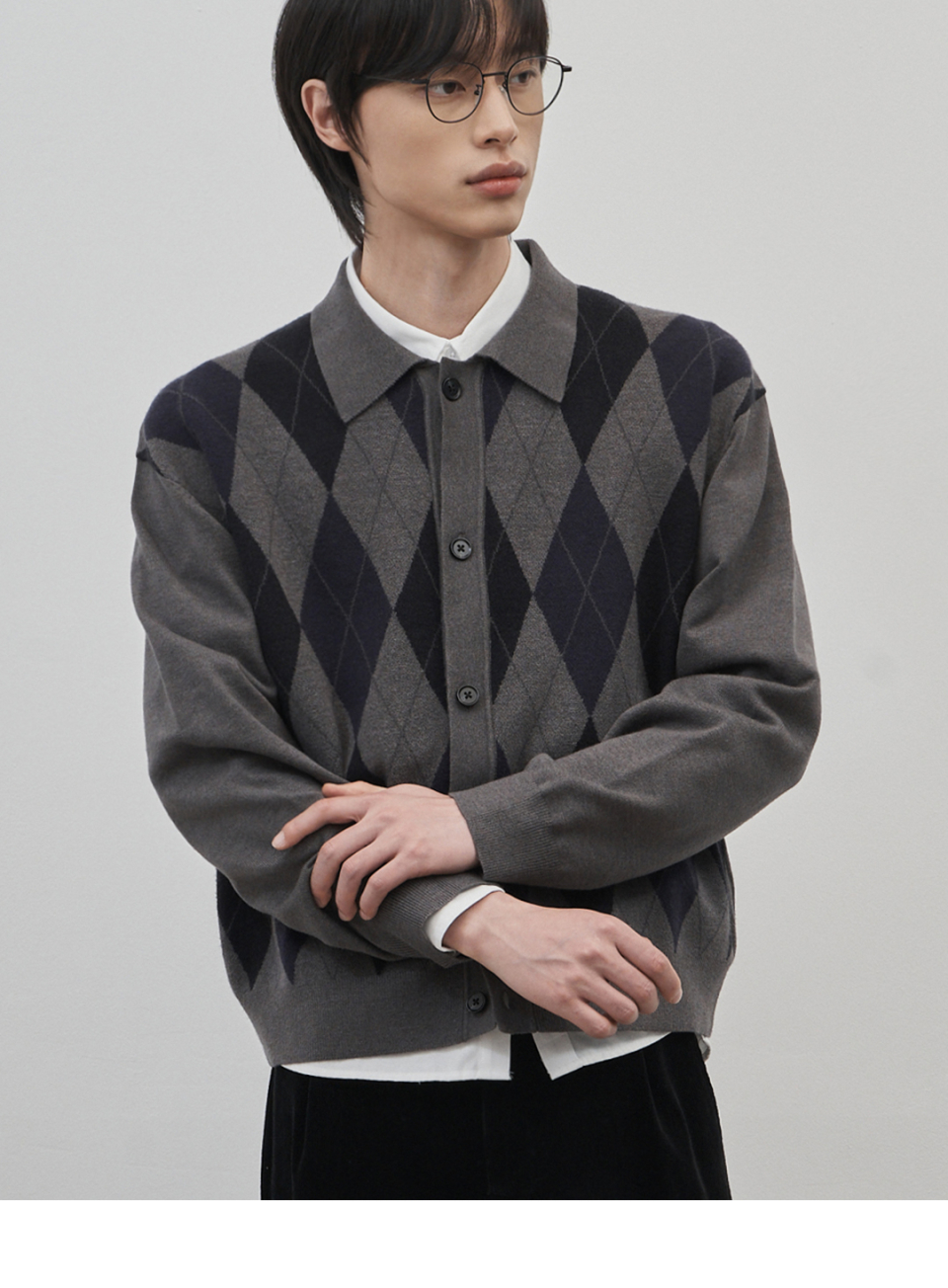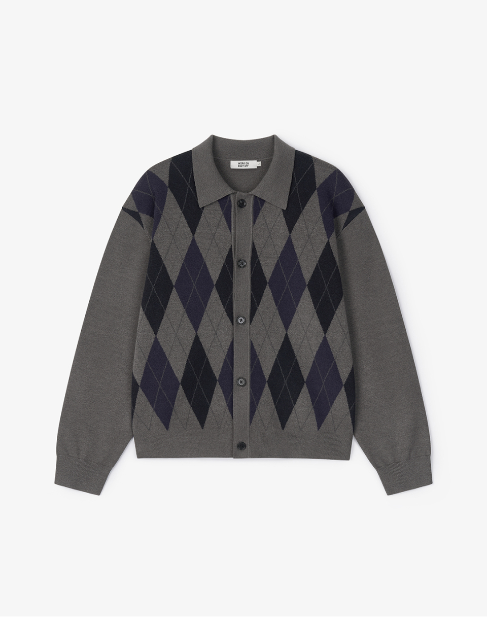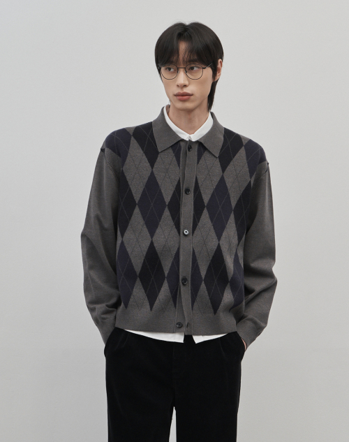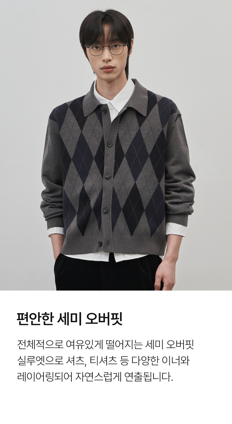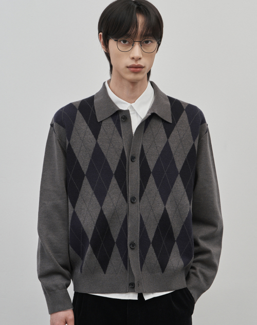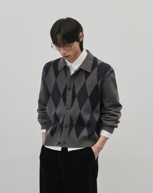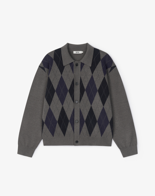 카렌 세미 오버핏 아가일 카라 가디건 [그레이]