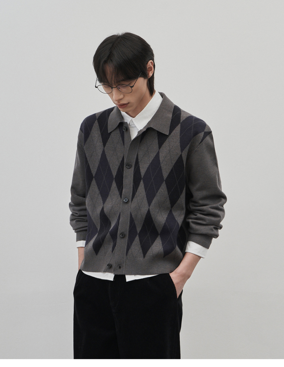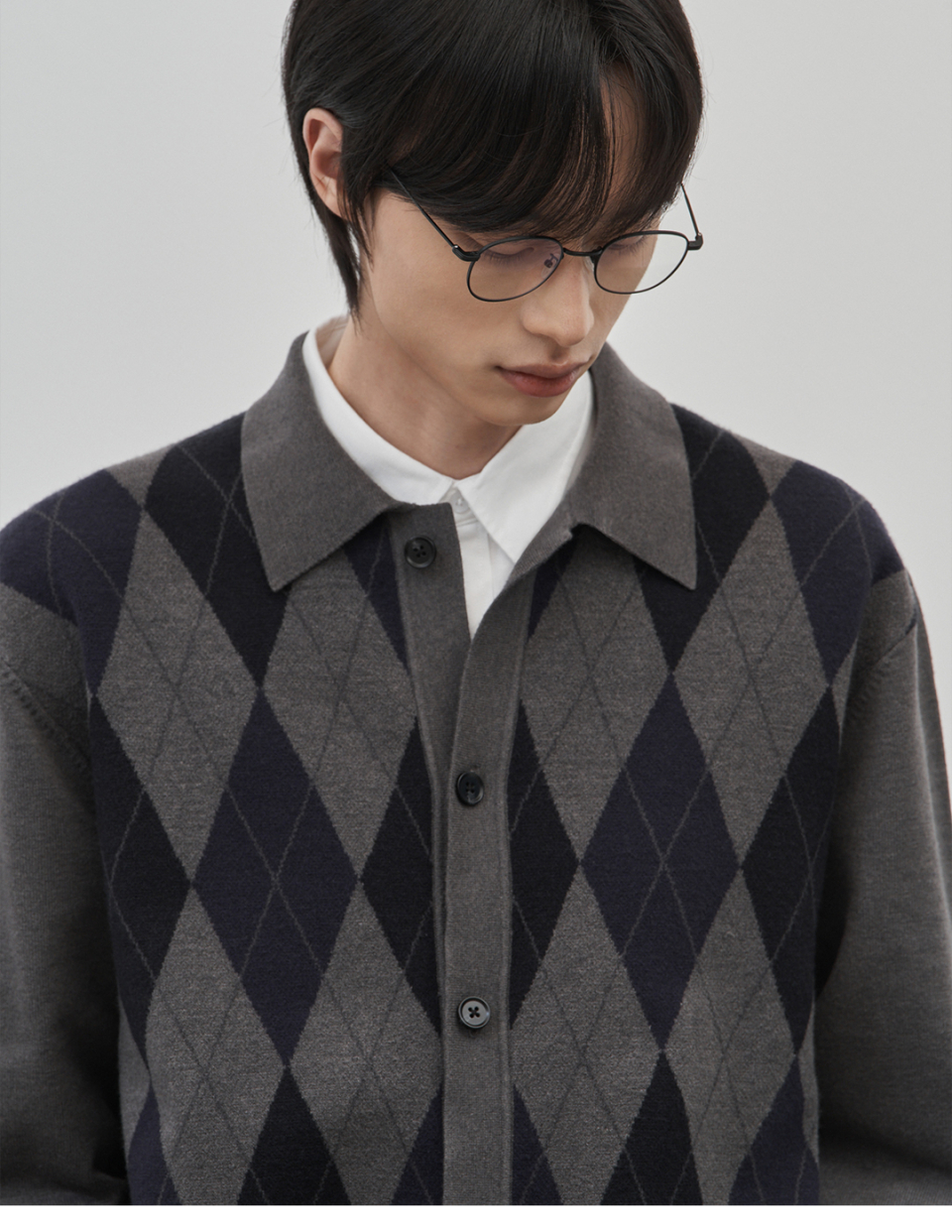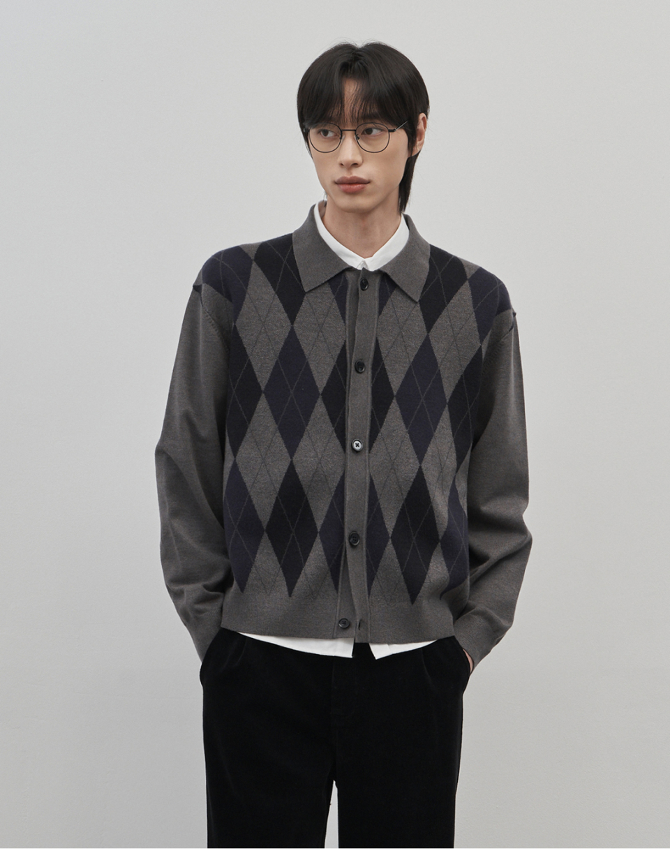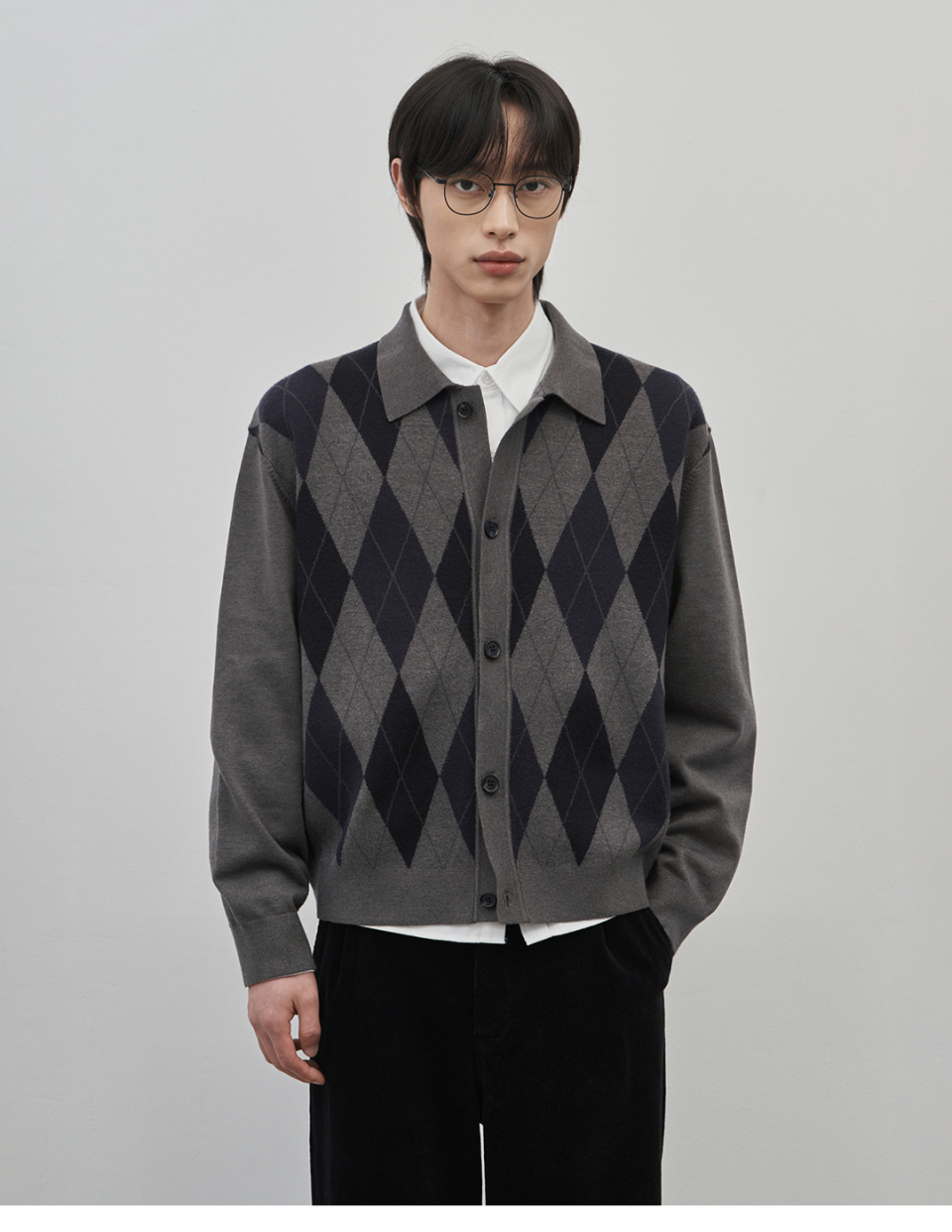 카렌 세미 오버핏 아가일 카라 가디건 [그레이]