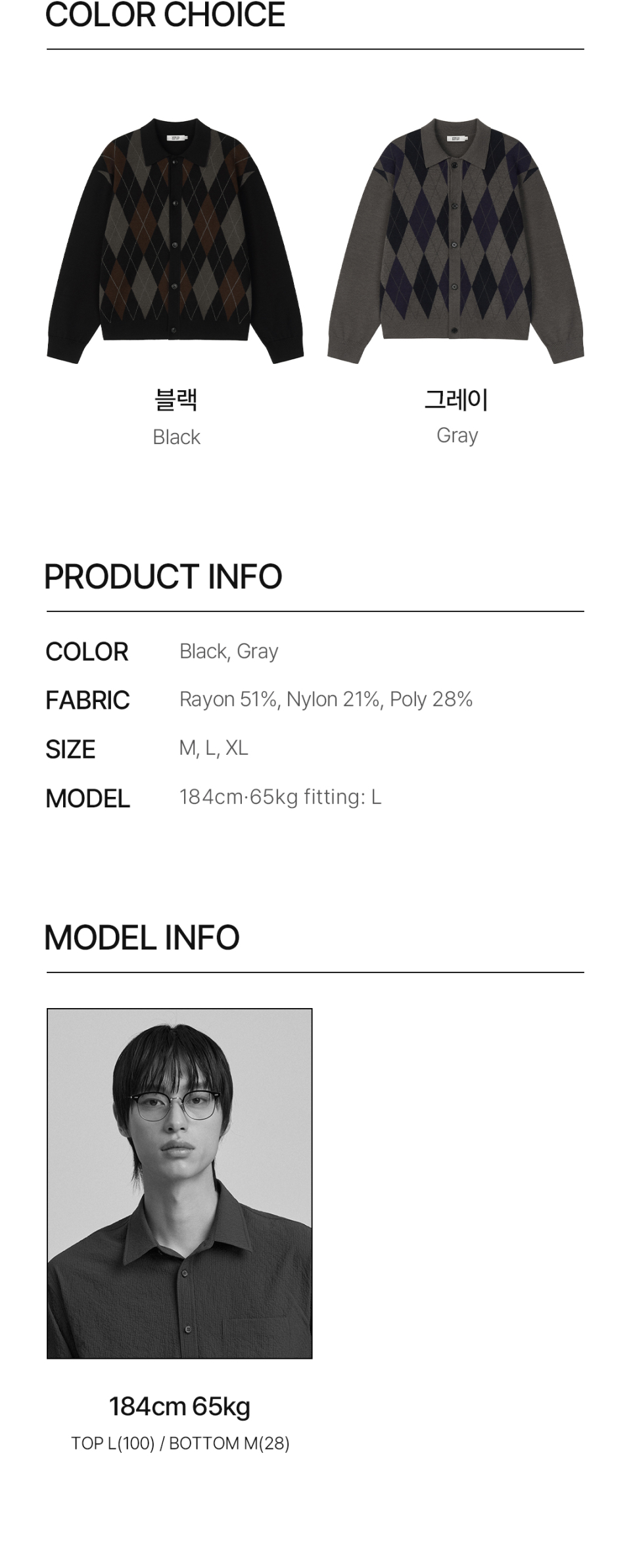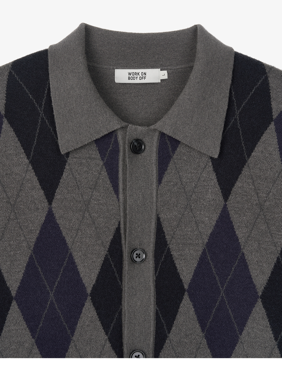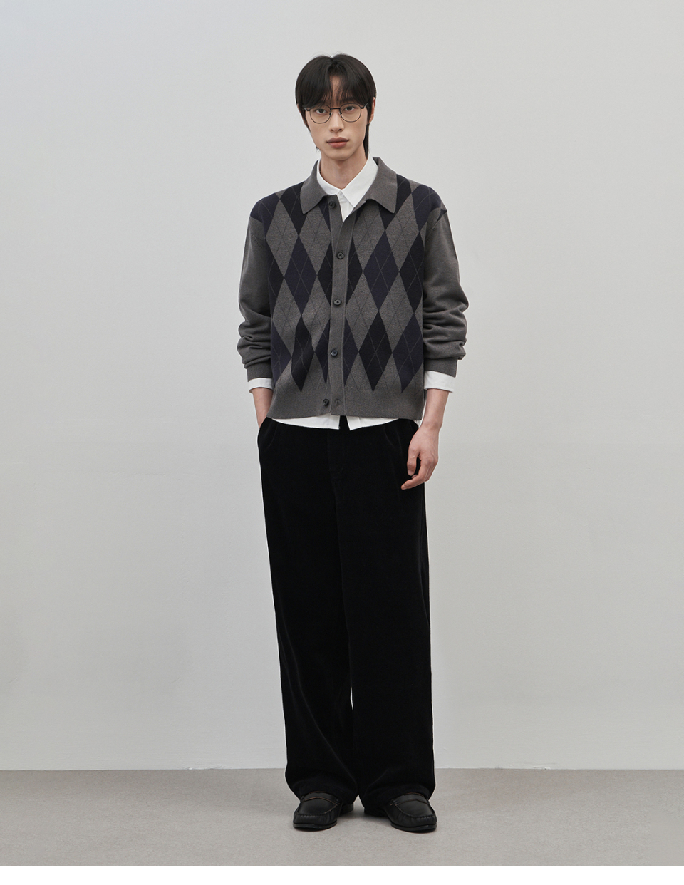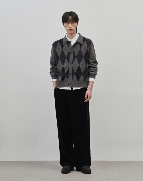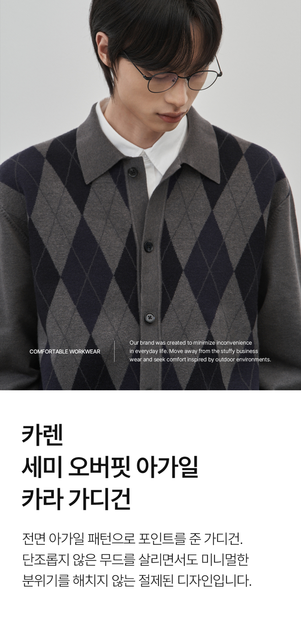 카렌 세미 오버핏 아가일 카라 가디건 [그레이]