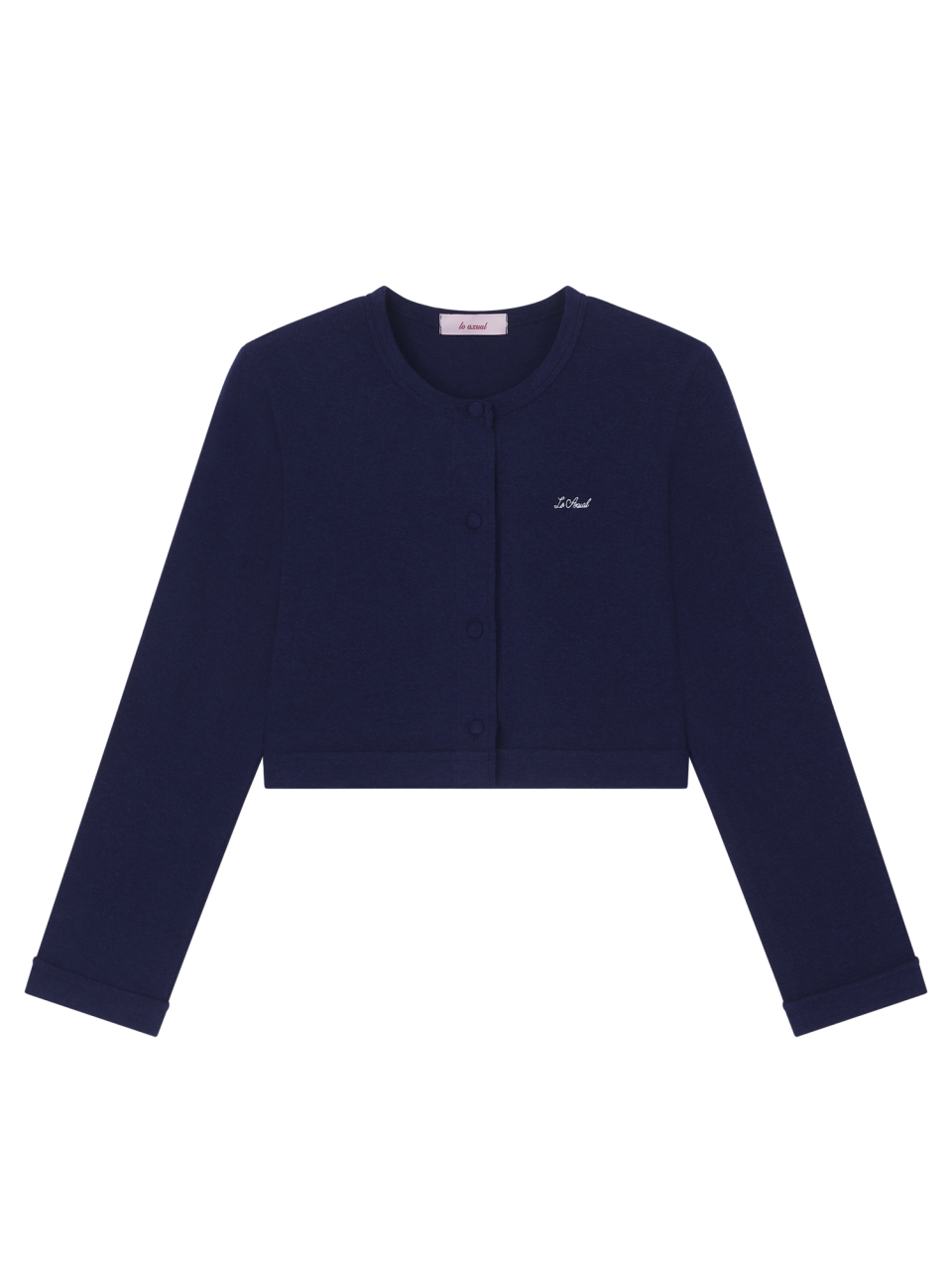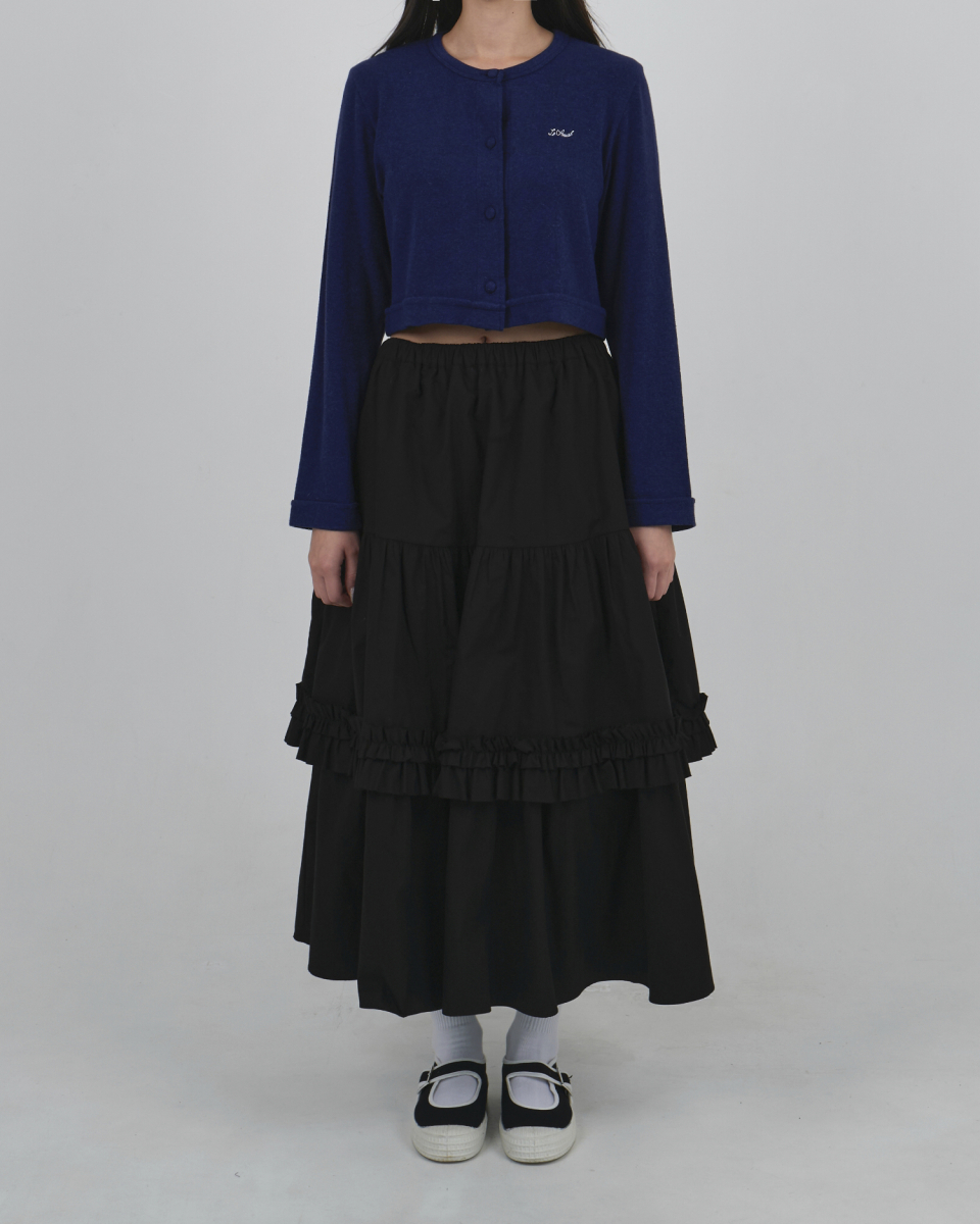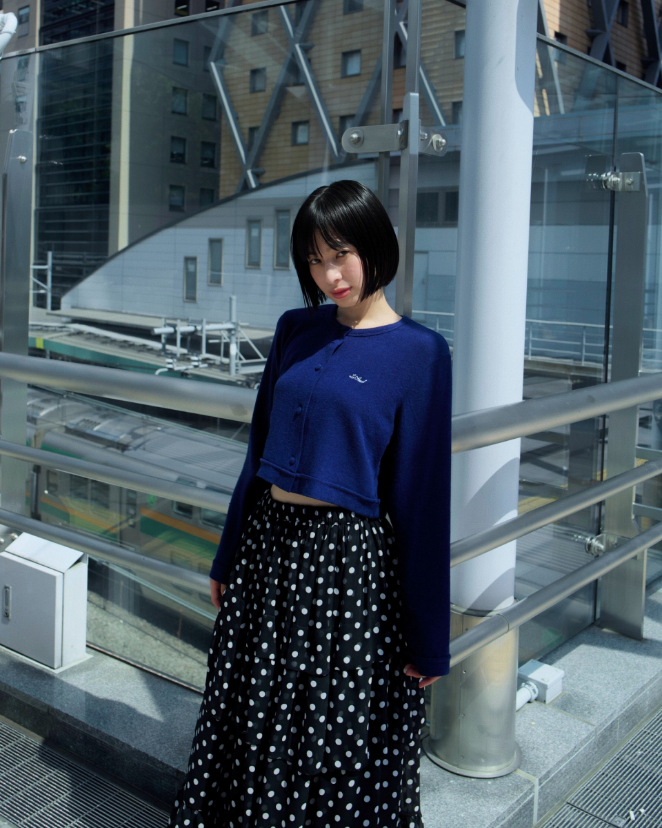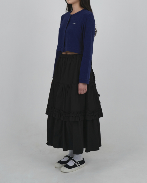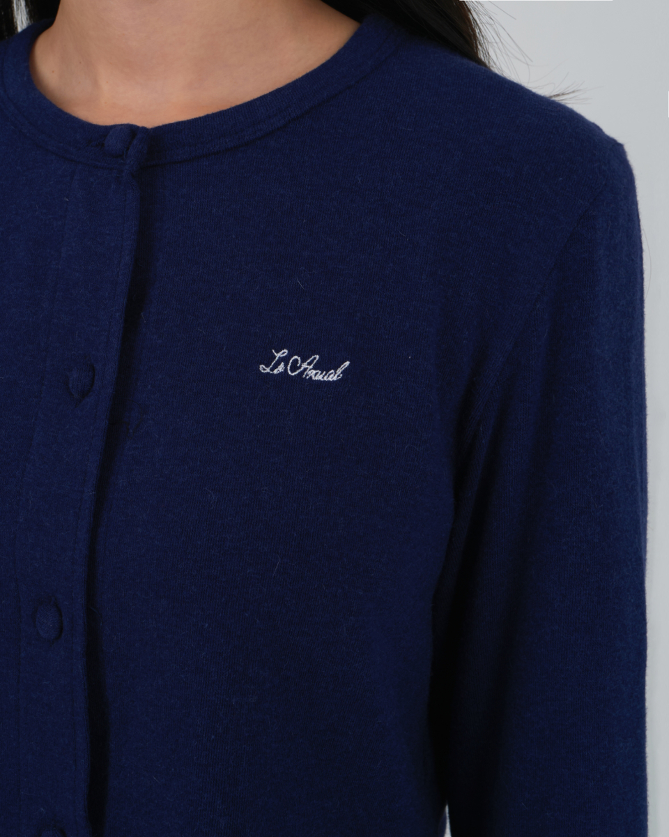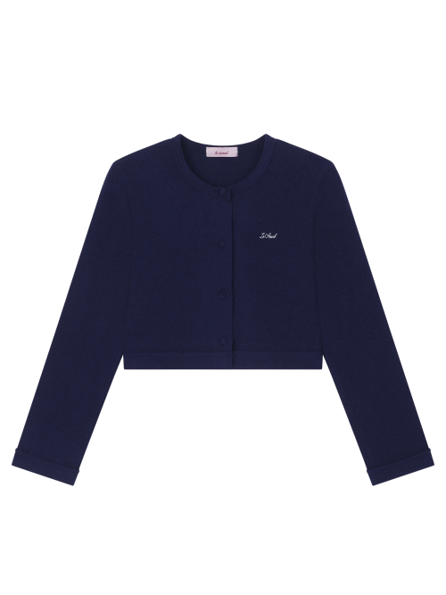 LOGO EMBROIDERY BLOOMING CROP CARDIGAN_DEEP BLUE