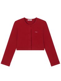 LOGO EMBROIDERY BLOOMING CROP CARDIGAN_RED