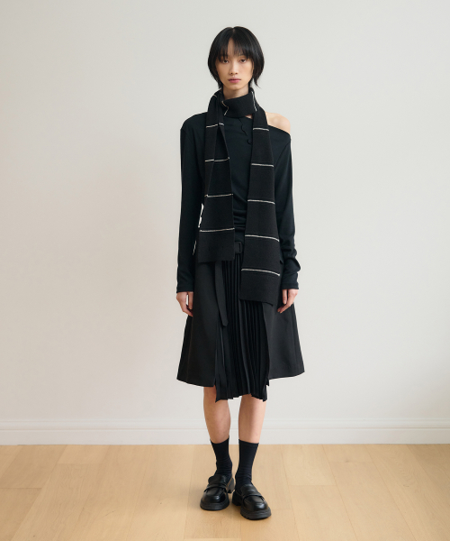 언발 컷팅 셔링 스트랩 사선 레이어드 롱슬리브리스 세트_2COLOR