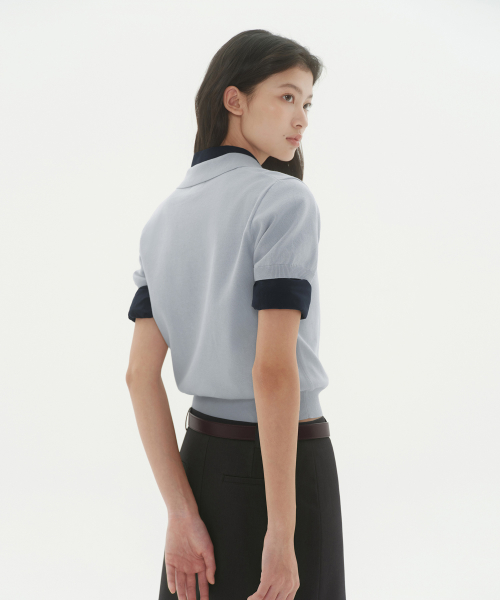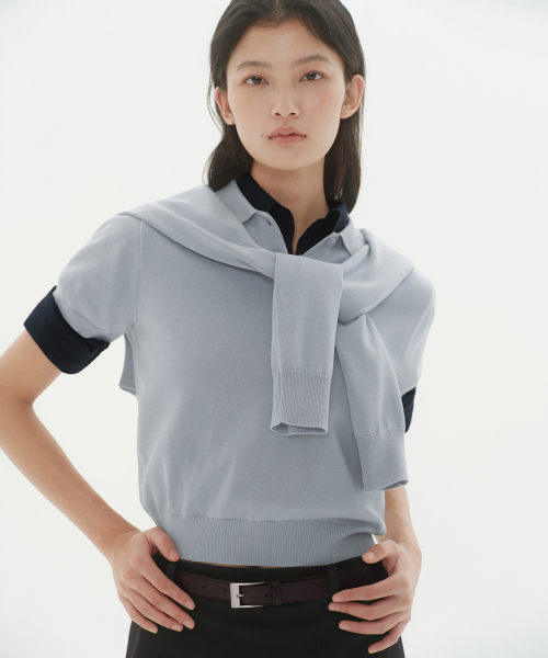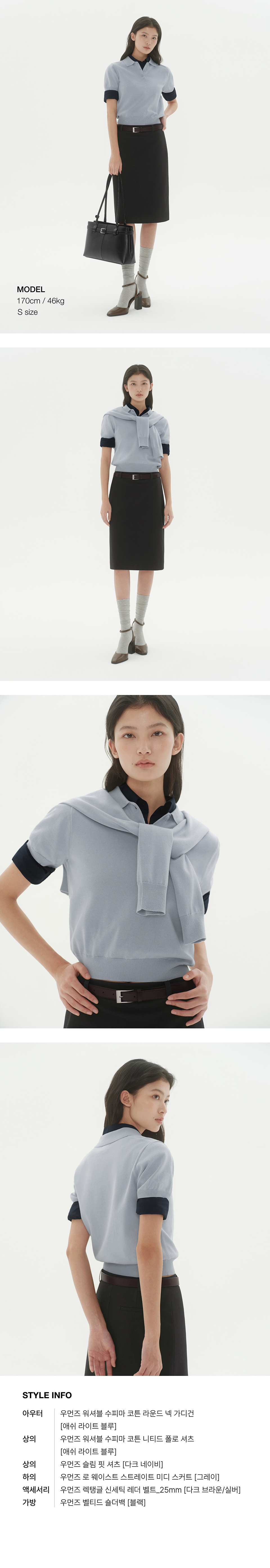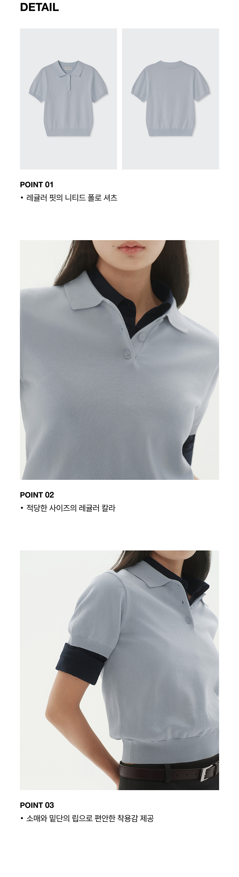 우먼즈 워셔블 수피마 코튼 니티드 폴로 셔츠 [애쉬 라이트 블루]