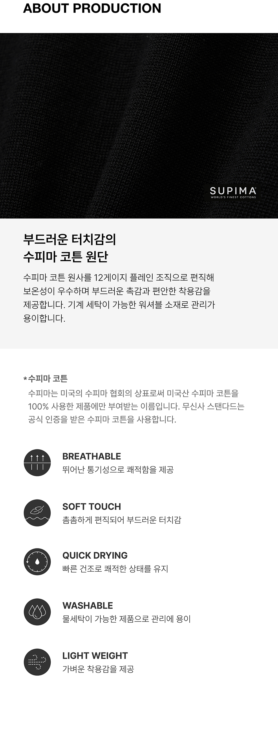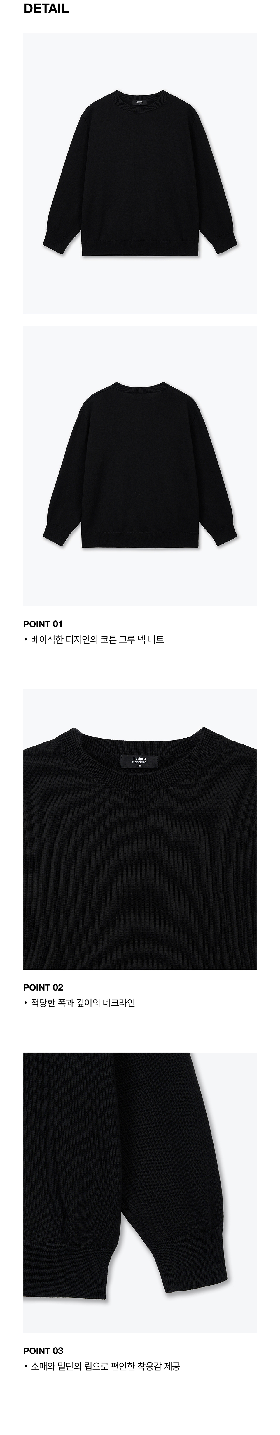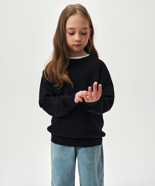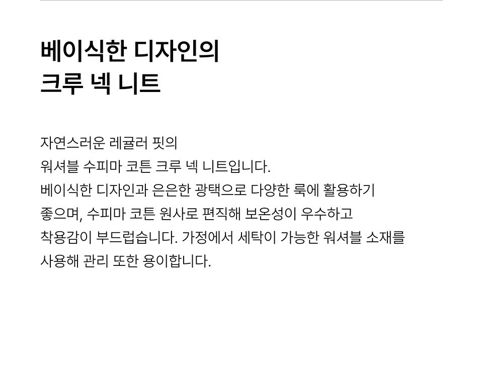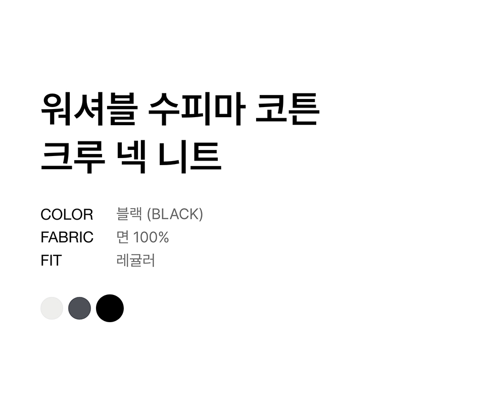 워셔블 수피마 코튼 크루 넥 니트 [블랙]