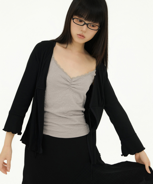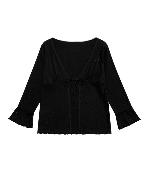 RIBBON GLITTER LACE CARDIGAN BLACK