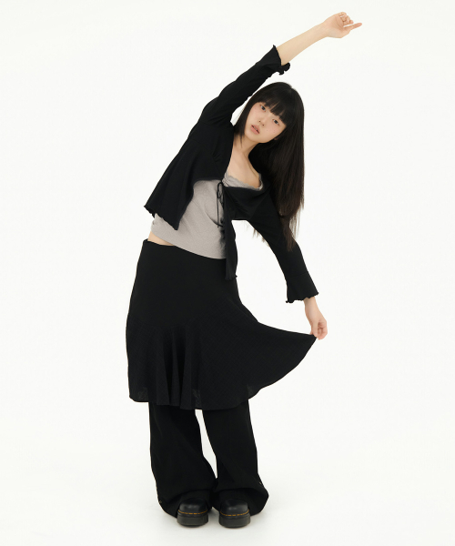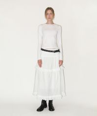 캉캉 프릴 플레어 리본 셔링 롱 코튼 스커트 [블랙]