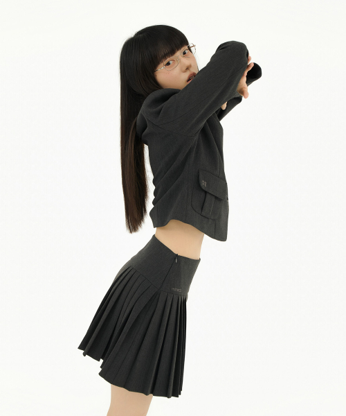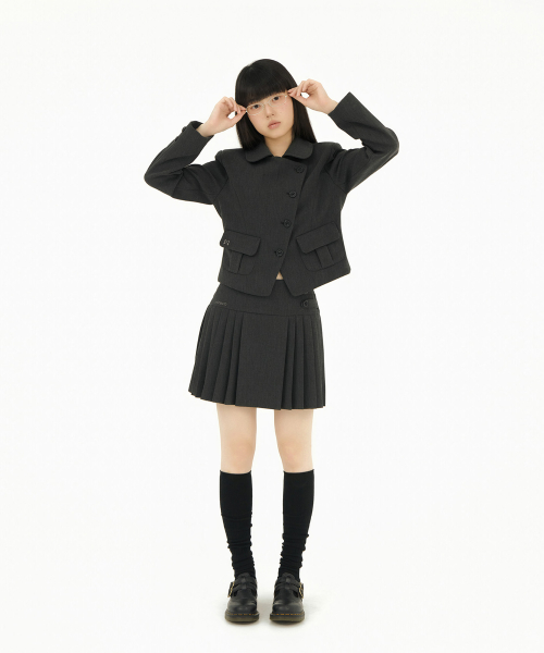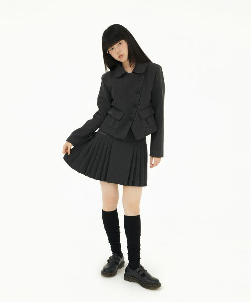 DIAGONAL TWO BUTTON PLEATS SK CHARCOAL
