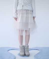 TULLE FRILL MIDI SKIRT SOFT BUTTER