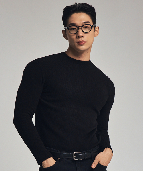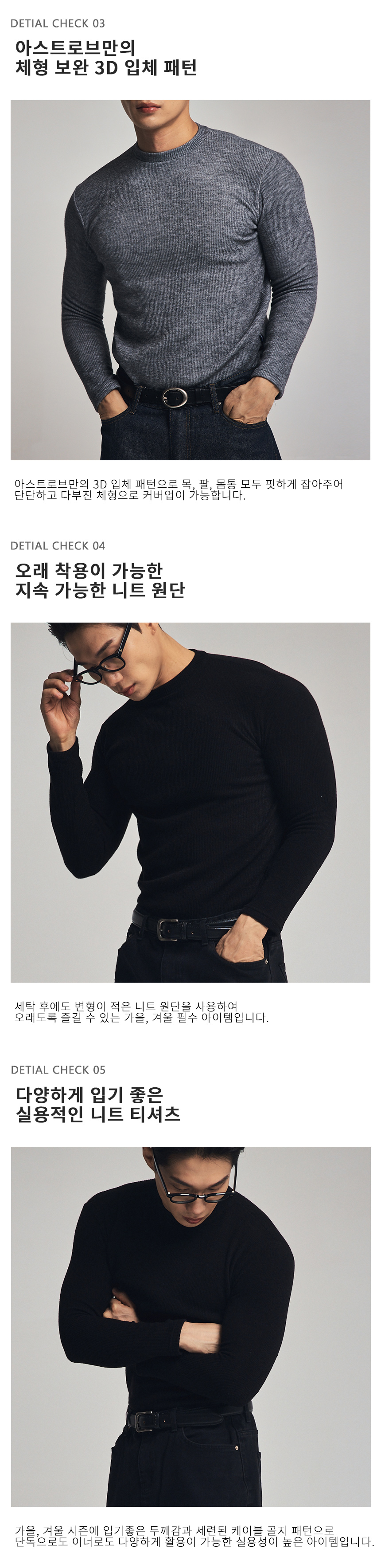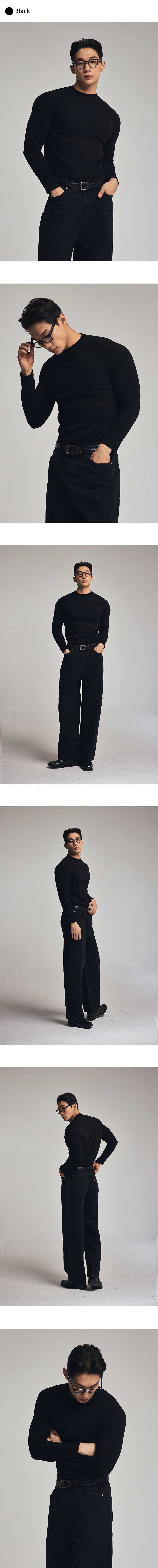 케이블 모크 머슬핏 니트티셔츠 블랙
