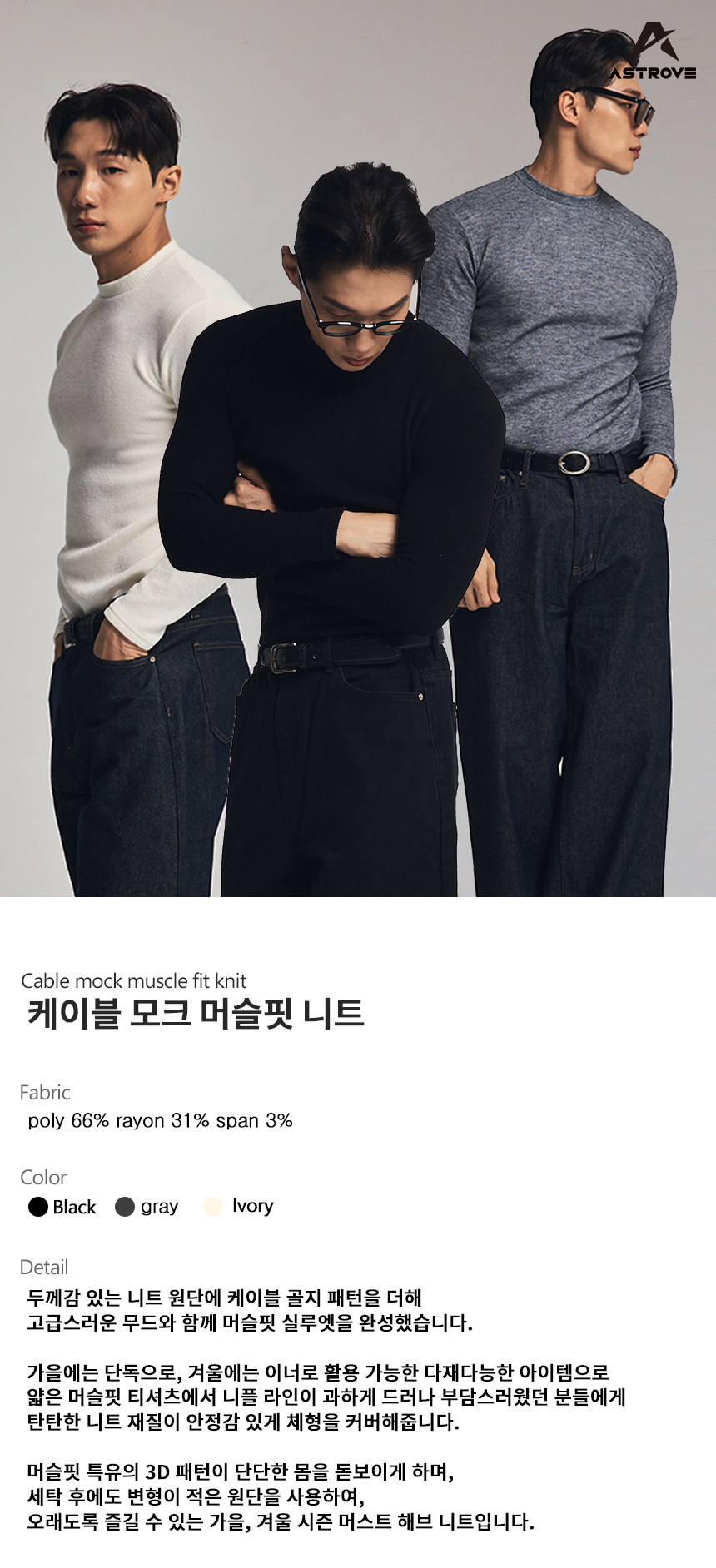 케이블 모크 머슬핏 니트티셔츠 아이보리