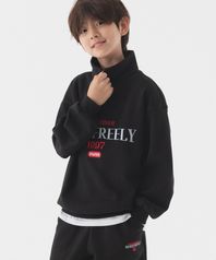 슬로건 오버핏 반집업 맨투맨 (블랙)
