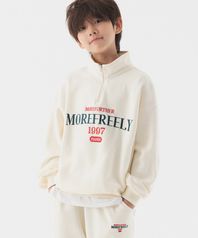 슬로건 오버핏 반집업 맨투맨 (크림)