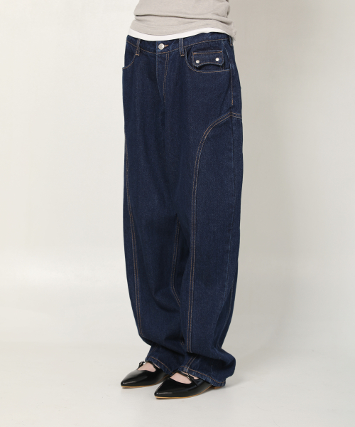 DIVIDE STITCH BALLOON DENIM PANTS (INDIGO)