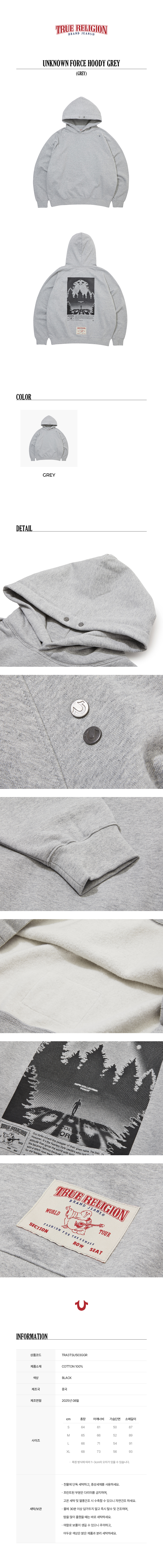 트루릴리젼(TRUERELIGION)은 2002년 미국에서 설립된 프리미엄 데님 브랜드입니다. Big-T, Super-T로 대표되는 스티치와 더불어 높은 퀄리티의 핏과 완성도를 지향합니다.