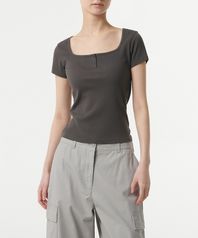 우먼즈 슬림 스퀘어 넥 헨리 티셔츠 [건메탈]