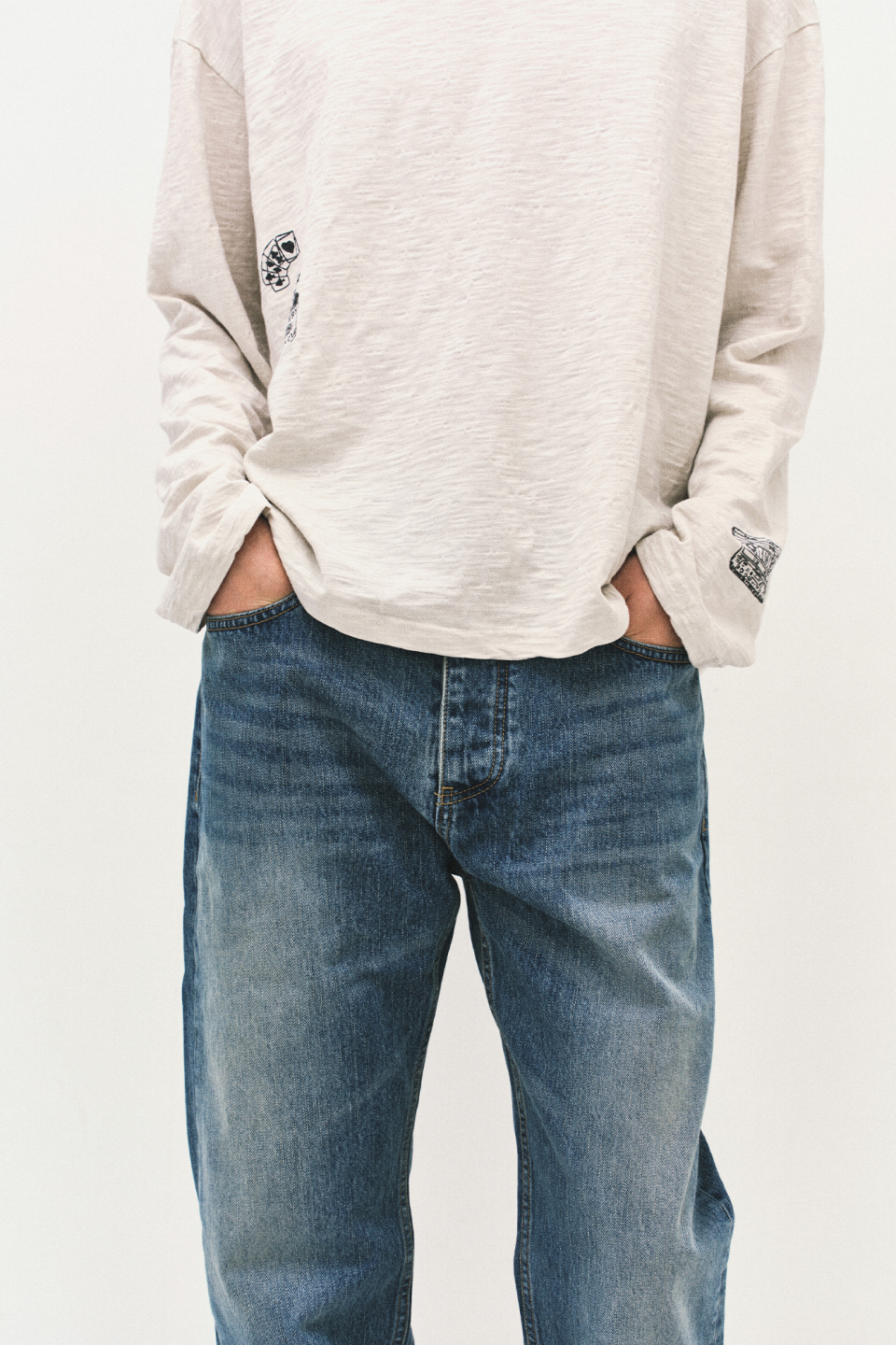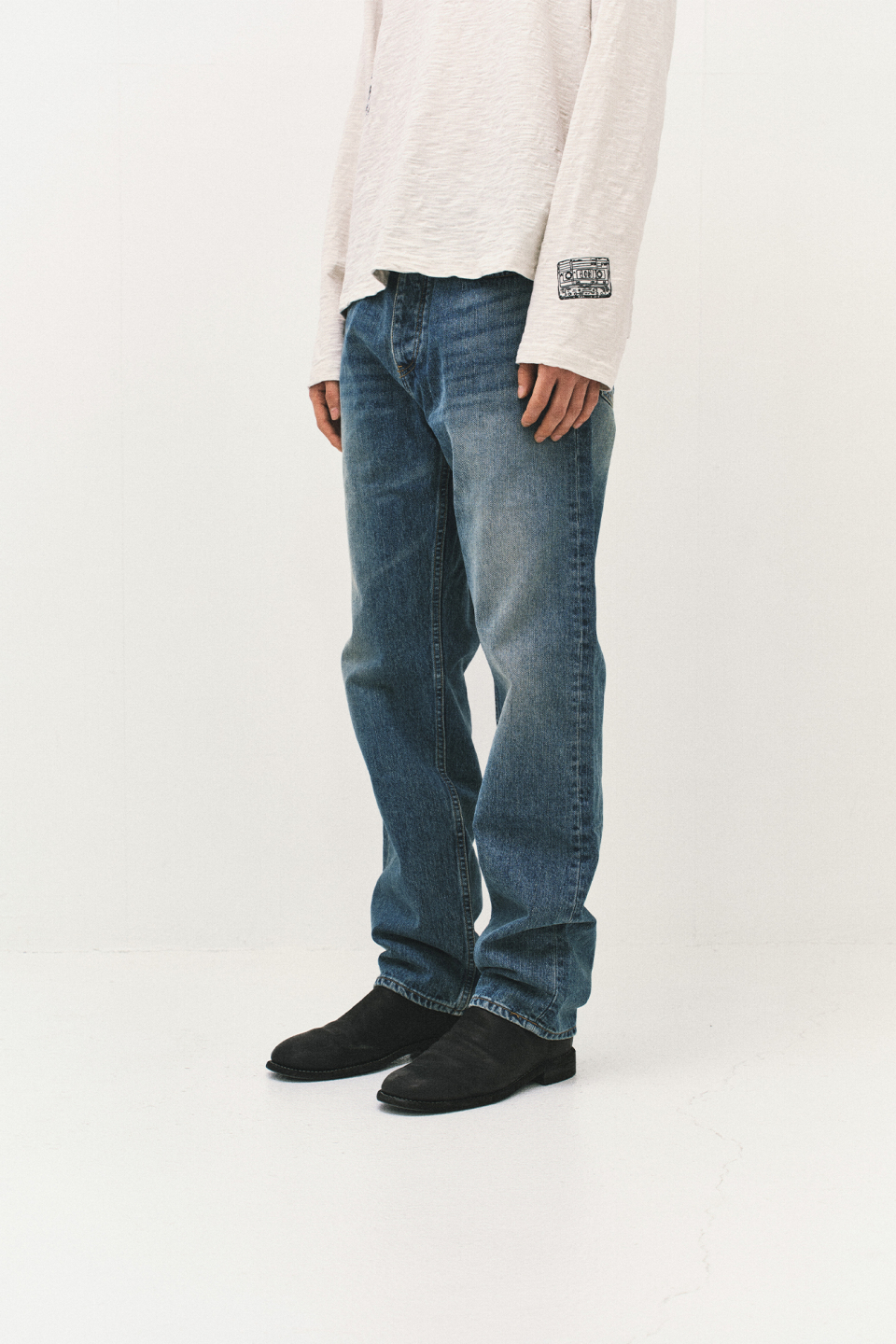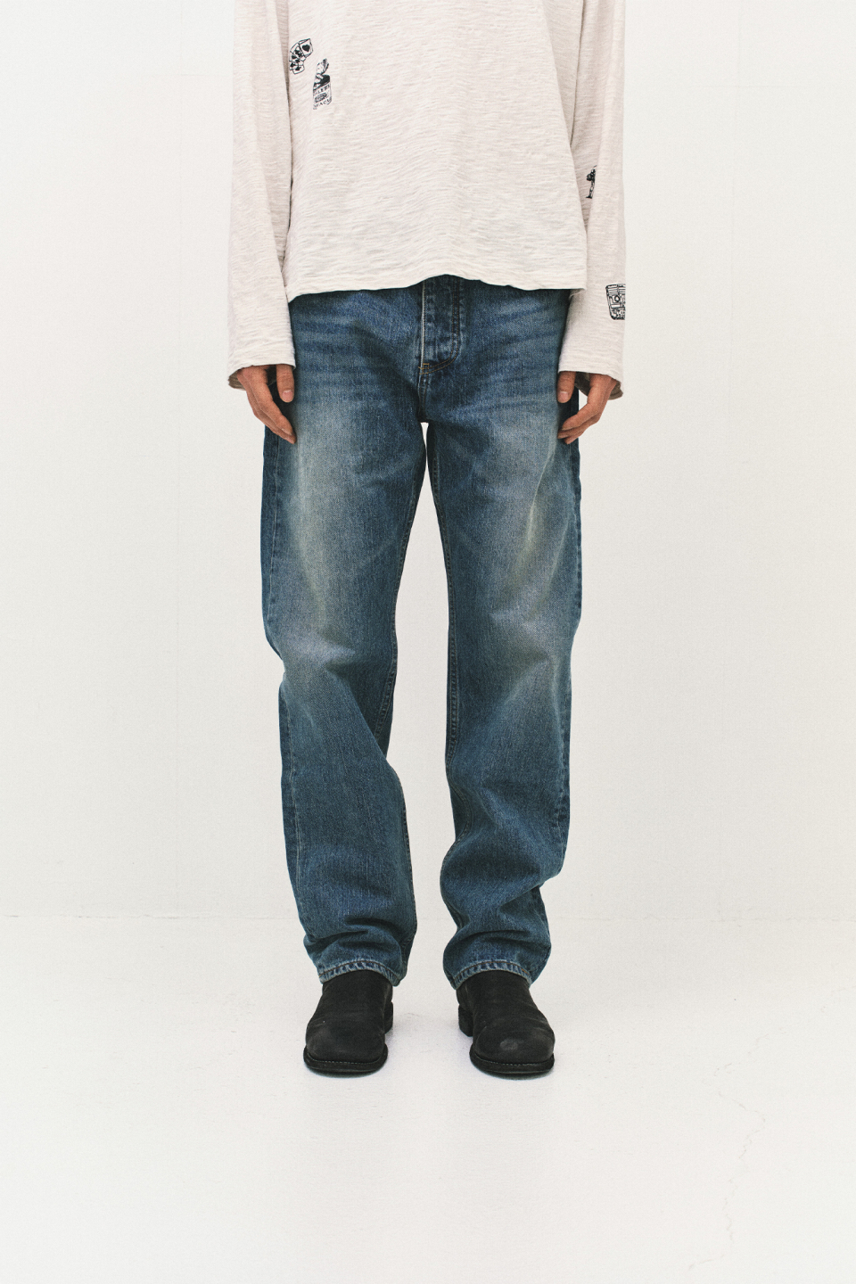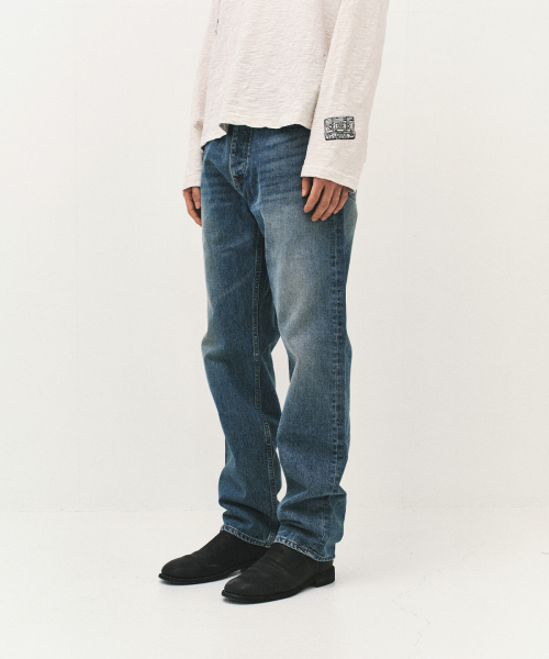 - 자연스러운 워싱과 스탠다드한 실루엣이 돋보이는 데님 팬츠.