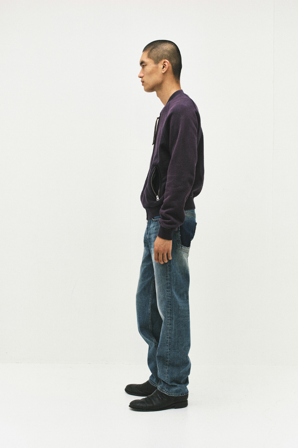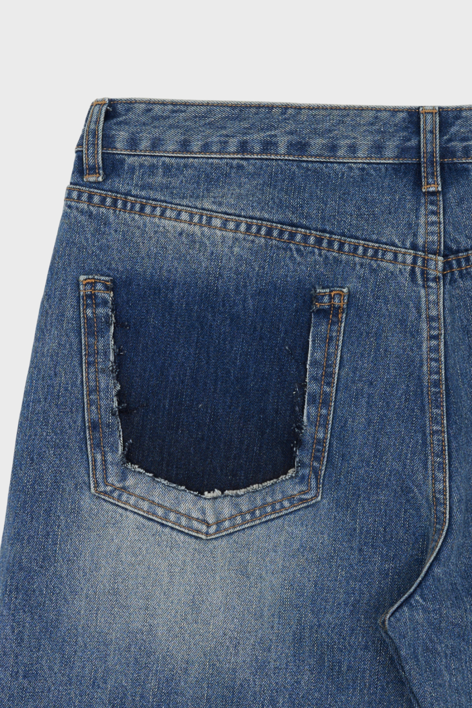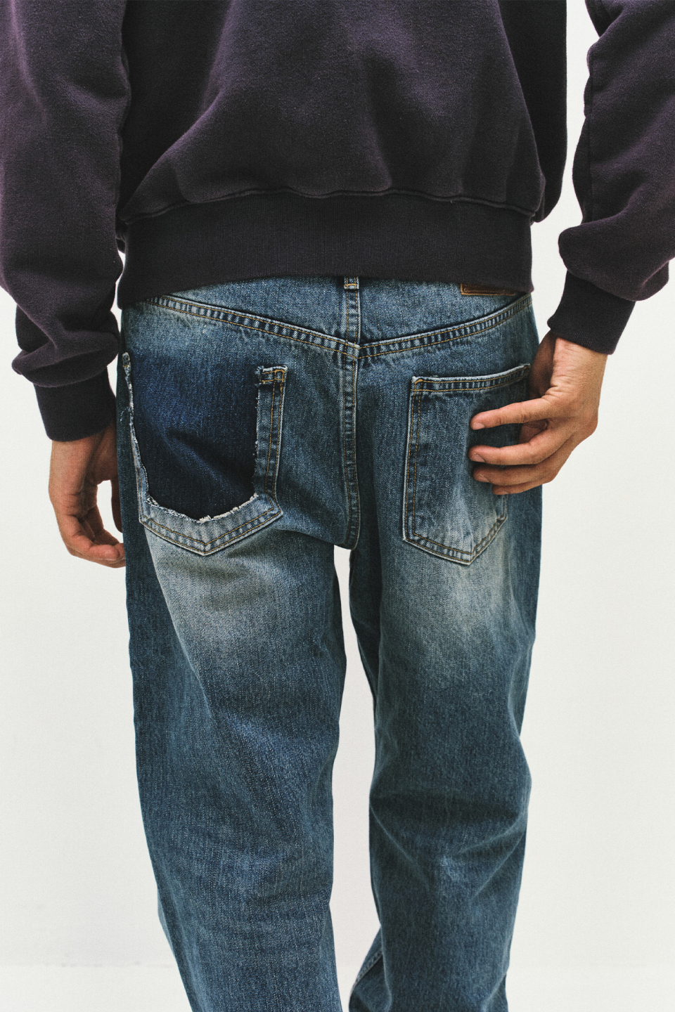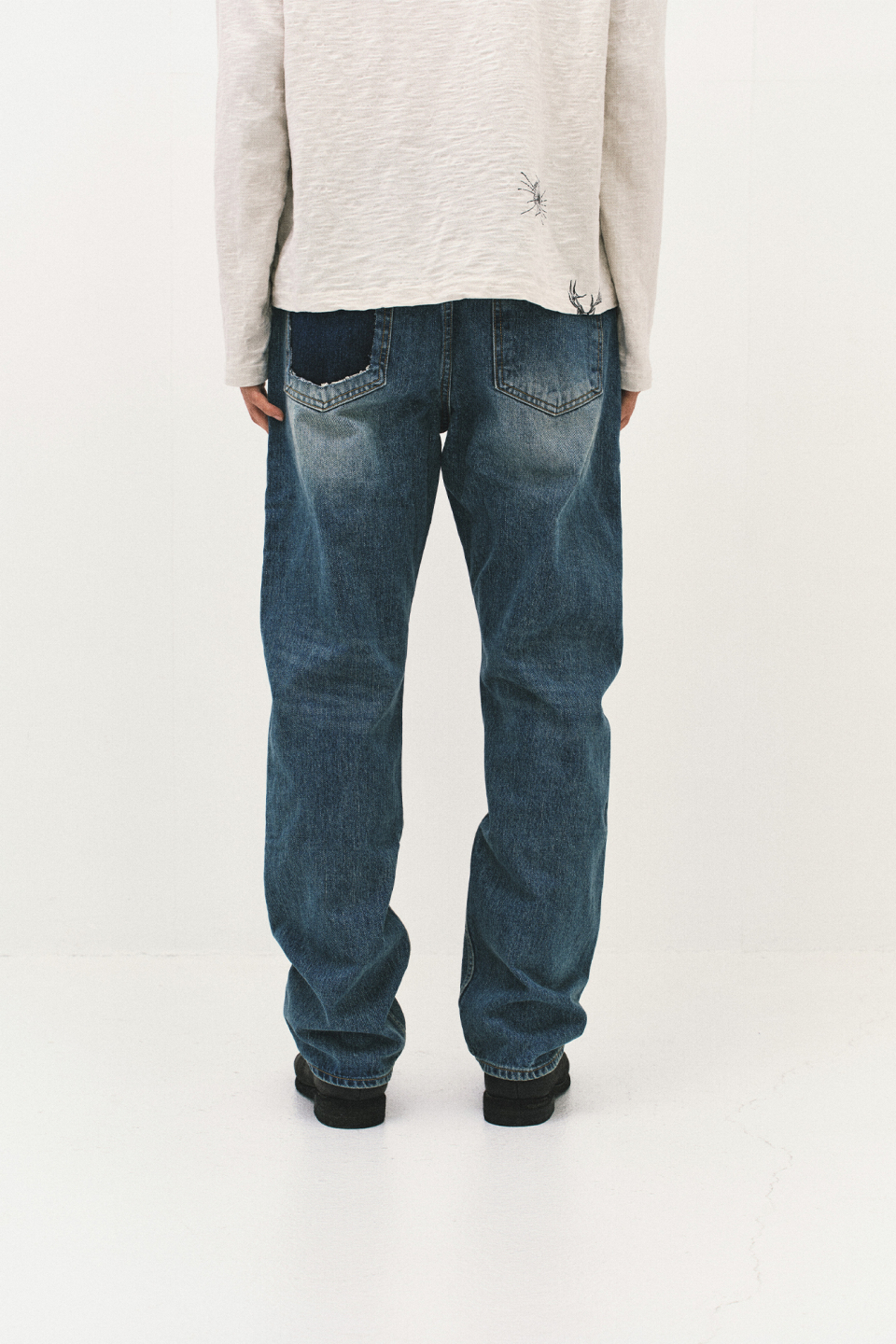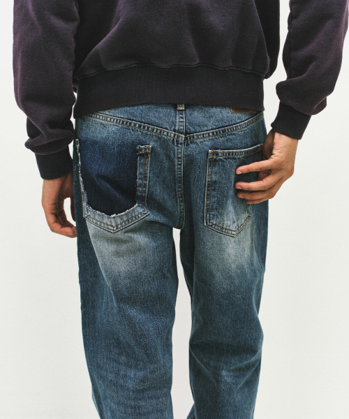 스트레이트 핏으로 제작되었으며, 한쪽 백포켓을 제거해 착용 시 독특한 포인트가 드러나는 개성 있는 외관을 완성했습니다