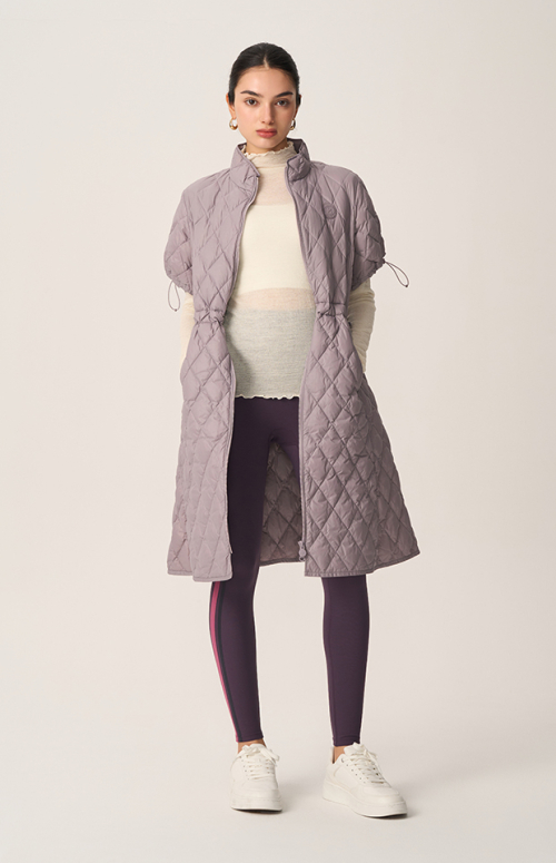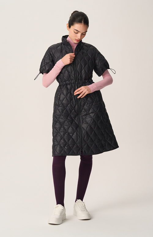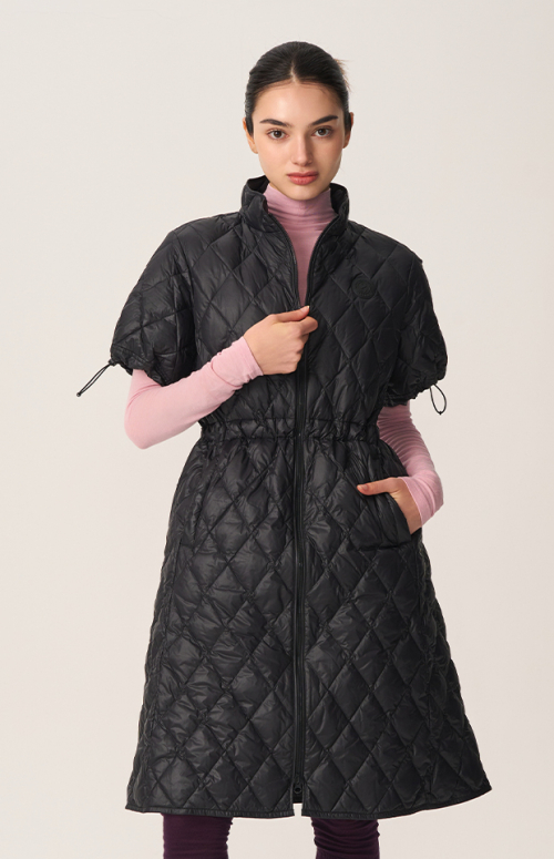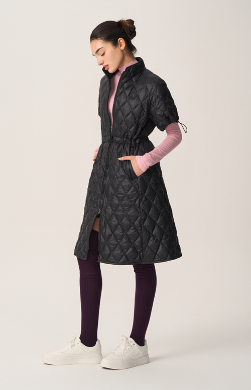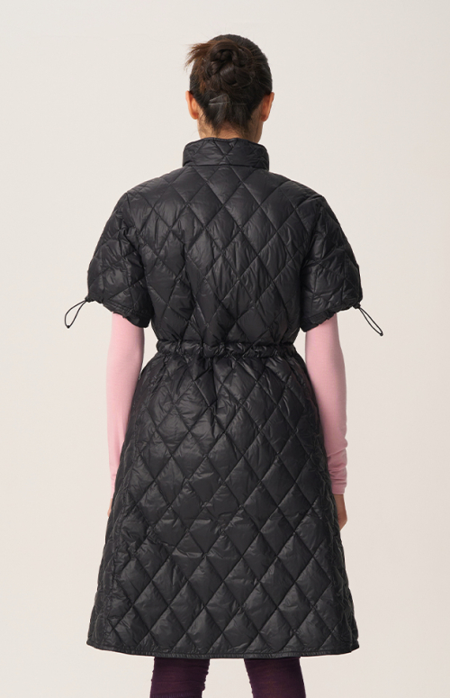 - 전체 마름모형의 퀼팅으로 디자인된 원피스형 점퍼