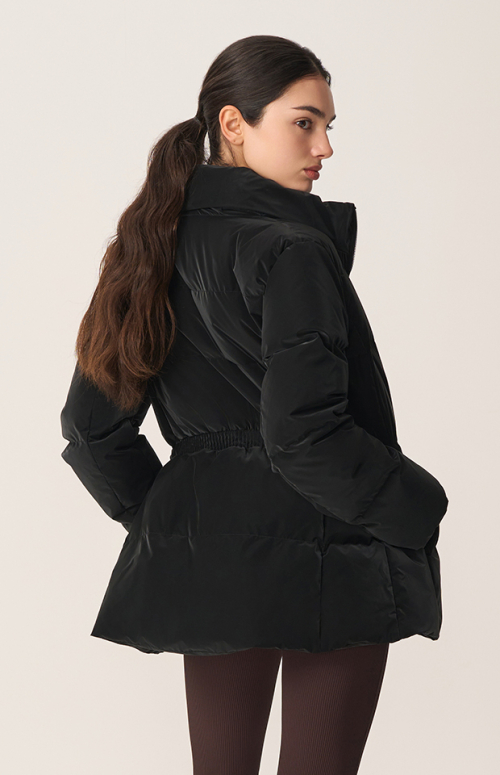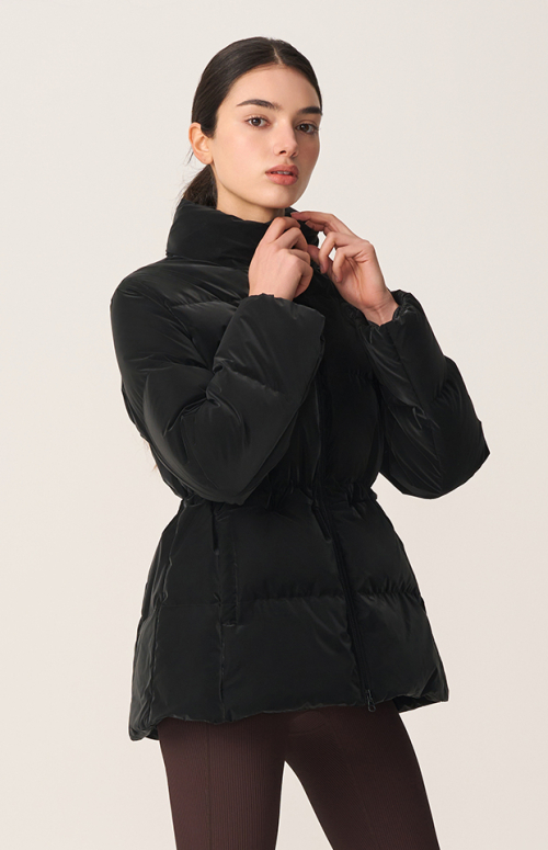 허리를 조일 수 있는 미들 길이의 헝가리 구스다운 점퍼