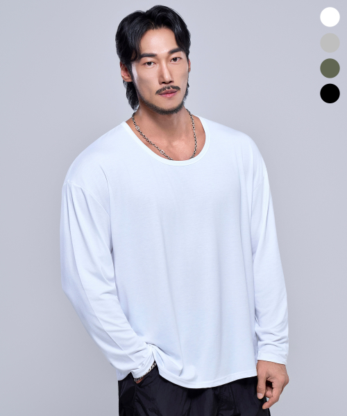 P2582 U넥 오버핏 긴팔티 [4COLOR]