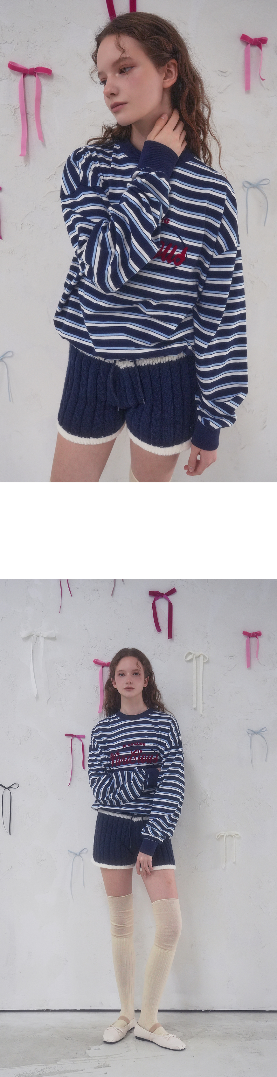 스트라이프 니트 카라 티셔츠 (2color)