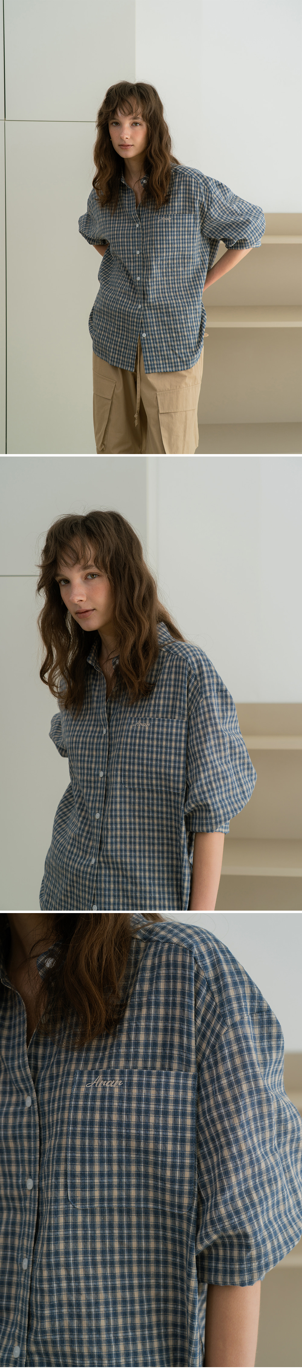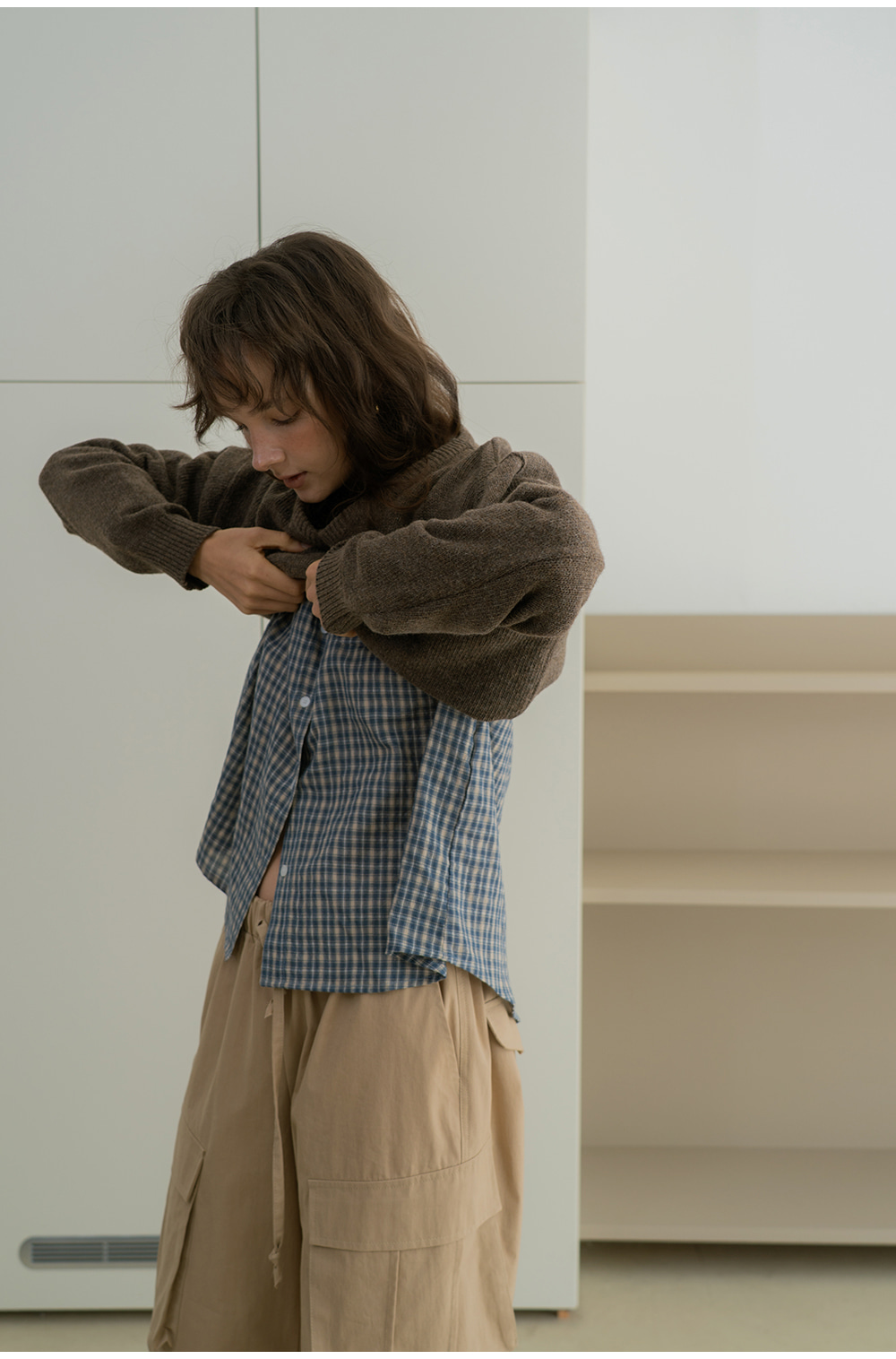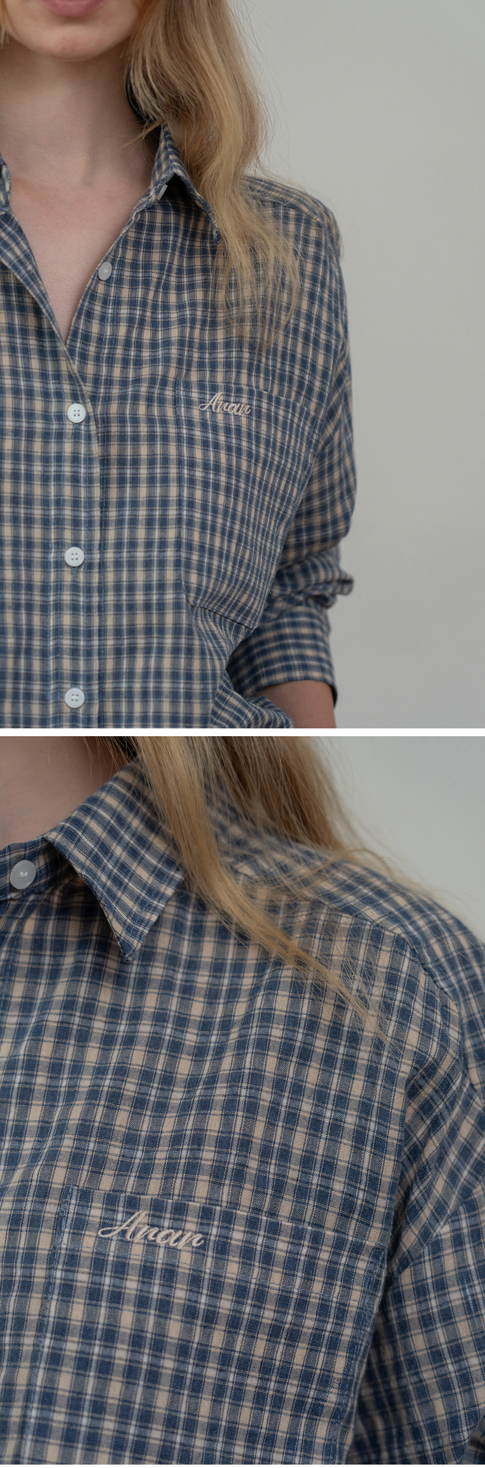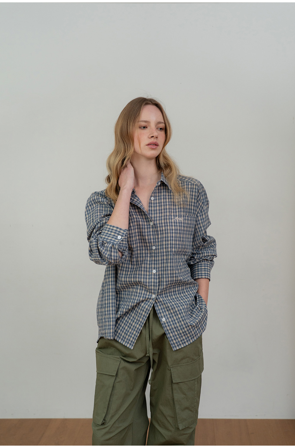 - 빈티지한 감성을 담은 자연스러운 체크 패턴이 포인트