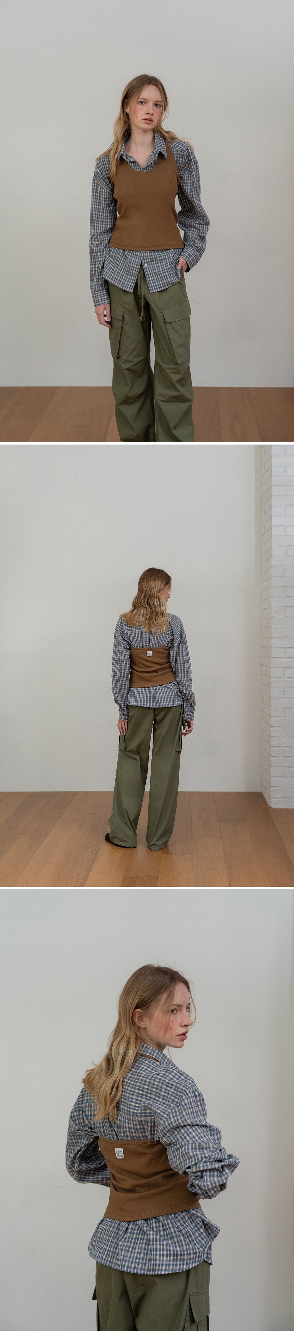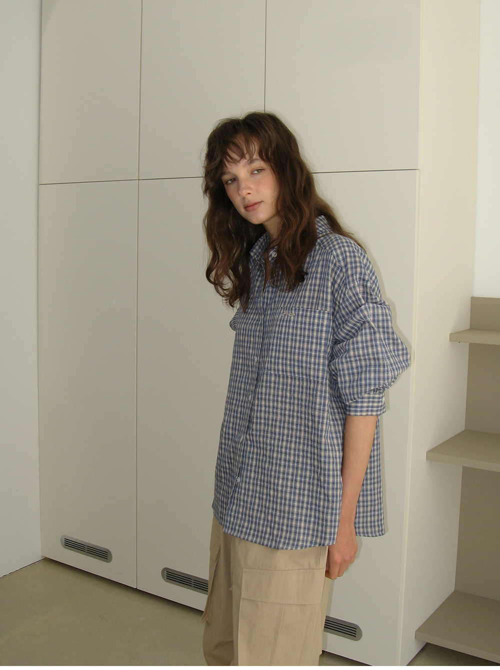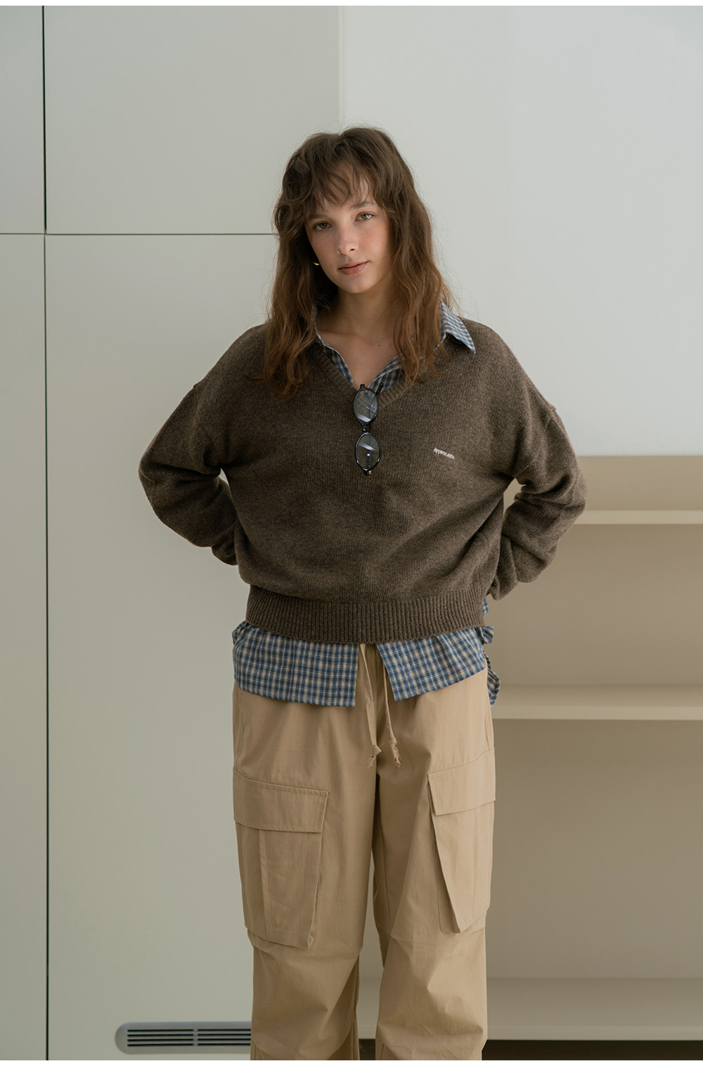 - 빈티지한 감성을 담은 자연스러운 체크 패턴이 포인트