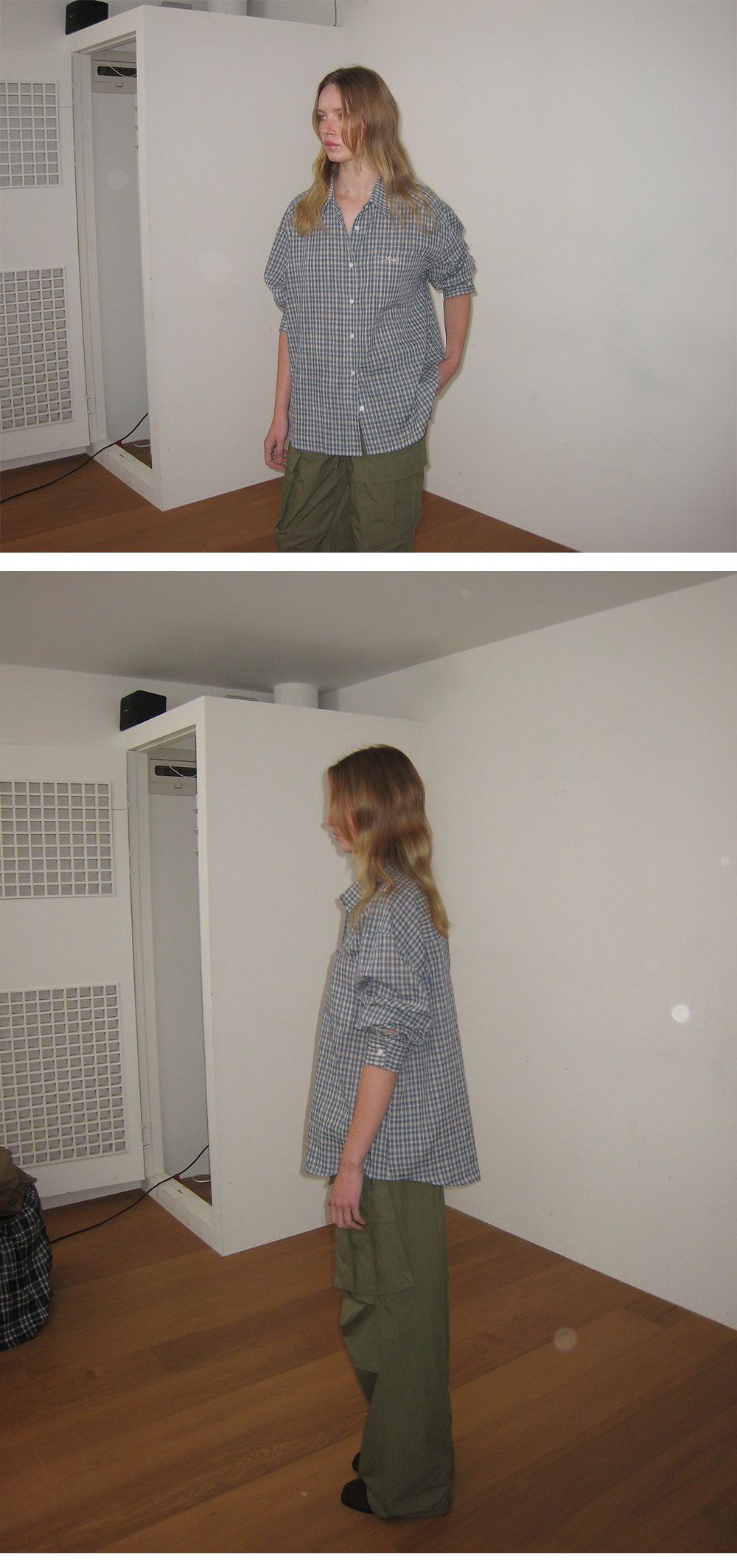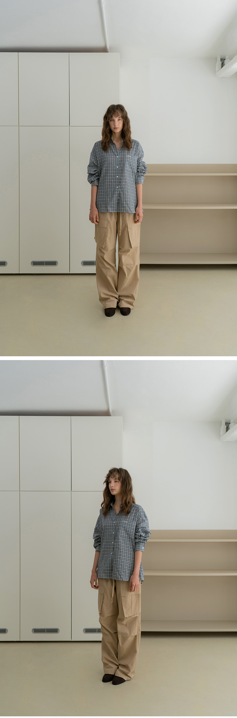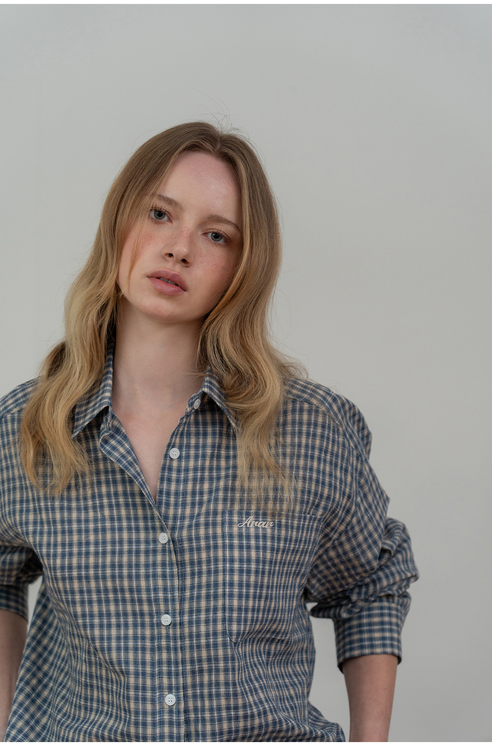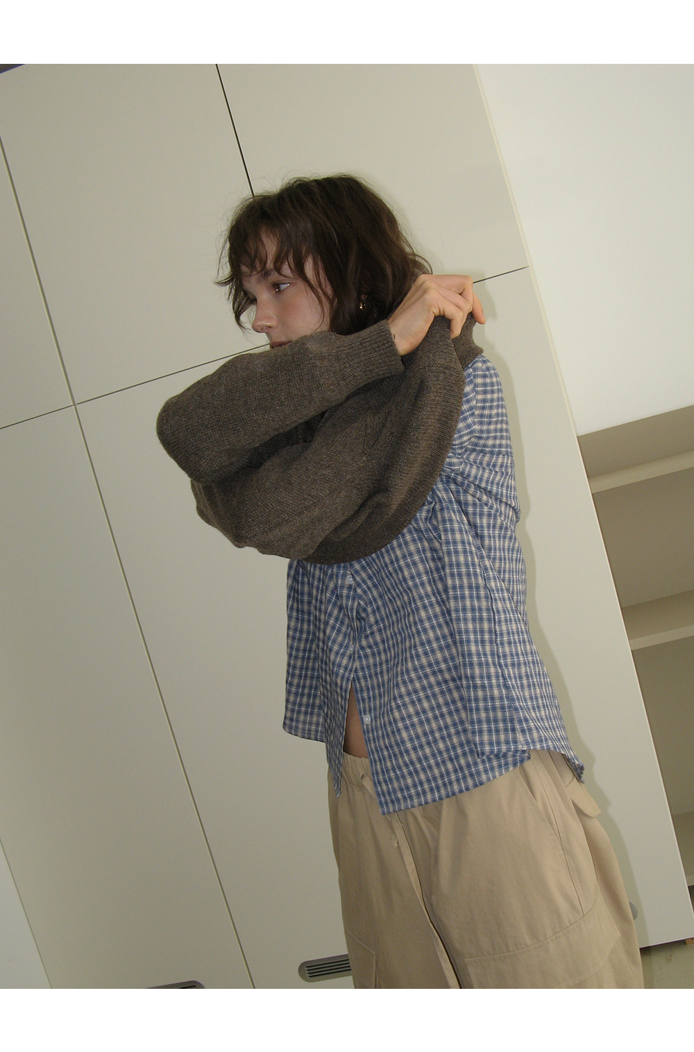 - 빈티지한 감성을 담은 자연스러운 체크 패턴이 포인트