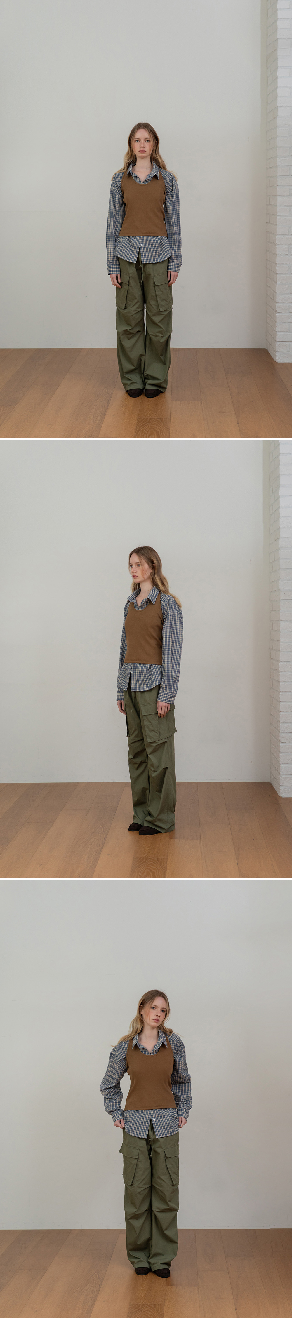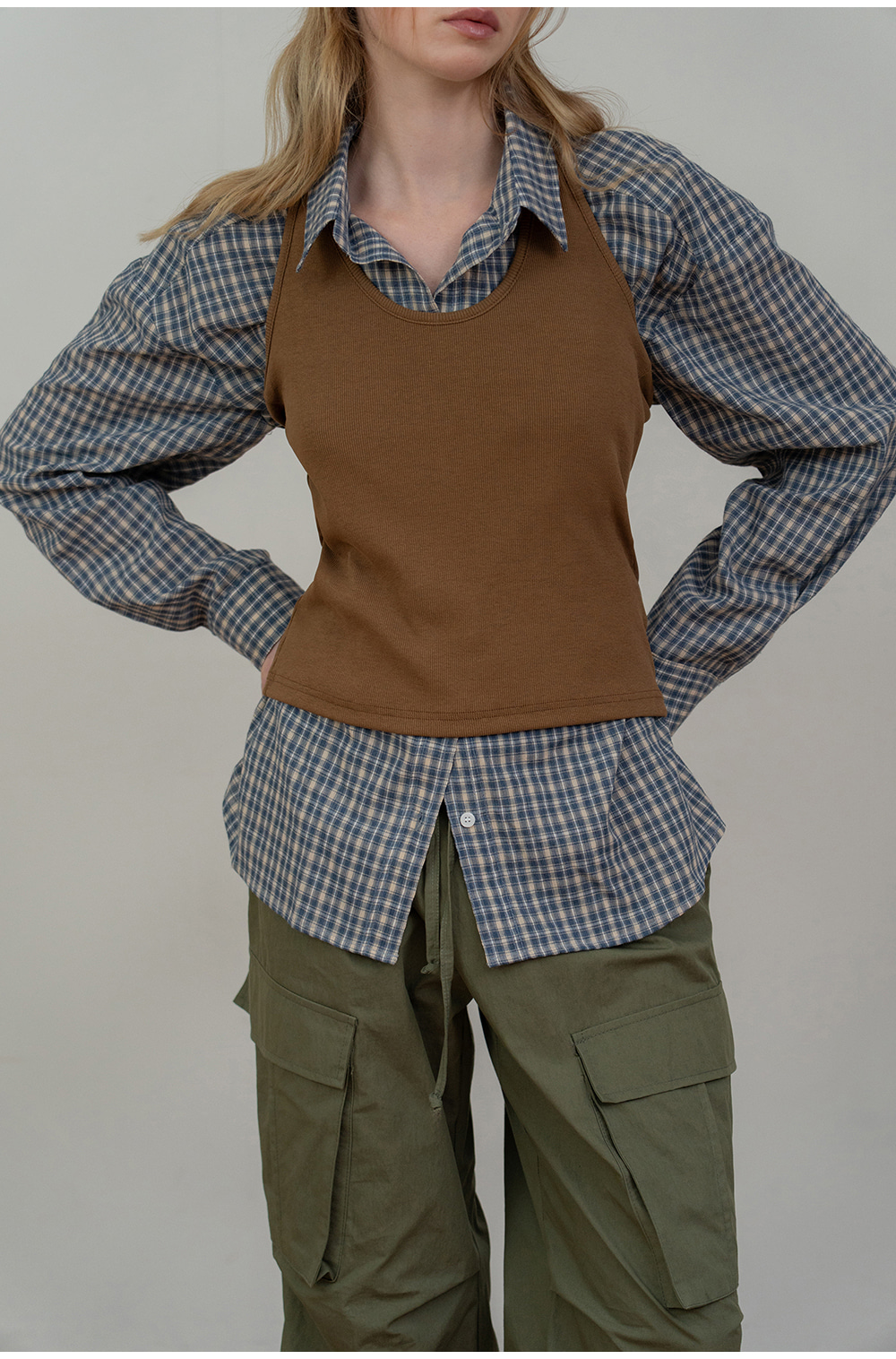 - 단독으로는 물론 니트 베스트나 아우터와 레이어드해도 멋스럽게 활용 가능한 베이직 아이템