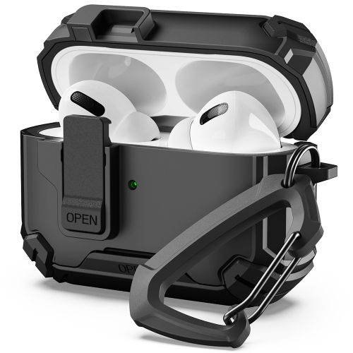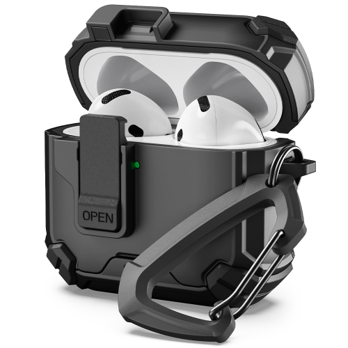 에어팟 아머락 PC 하드 에어팟·프로·1·2·4 세대 유닛 분실 방지 러기드 풀커버 범퍼 케이스+카라비너 키링