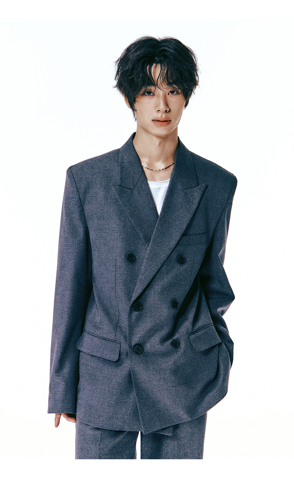 시에르 피크드 더블 오버핏 셋업 수트 [블랙]