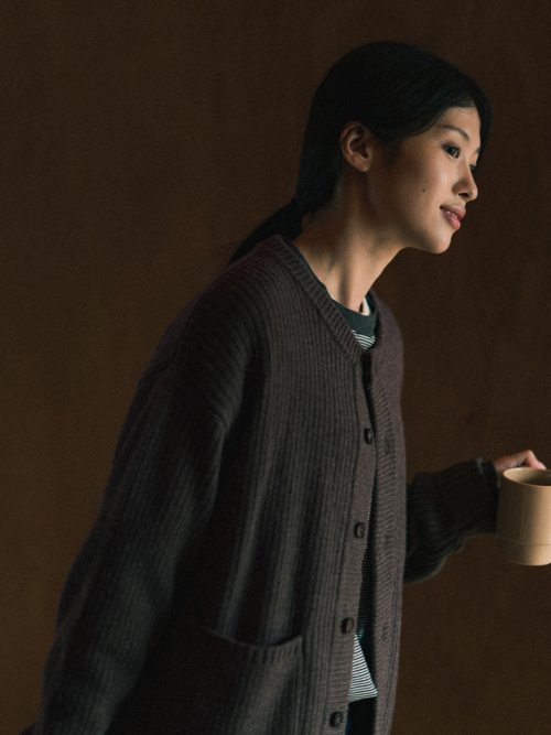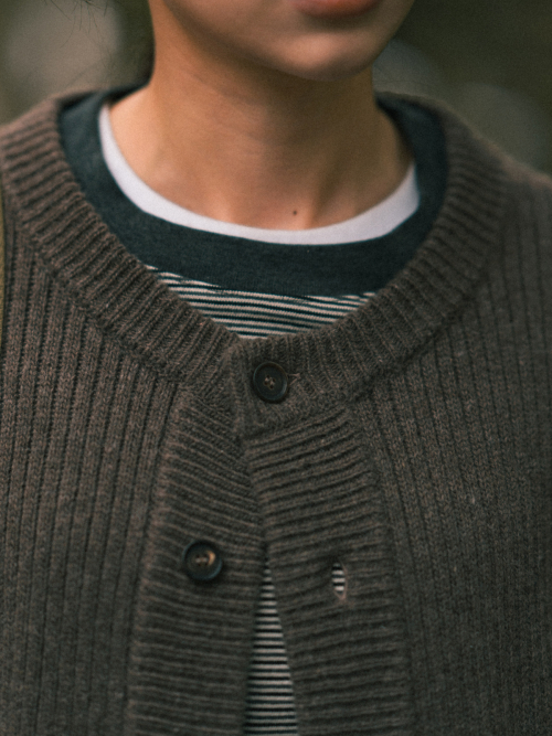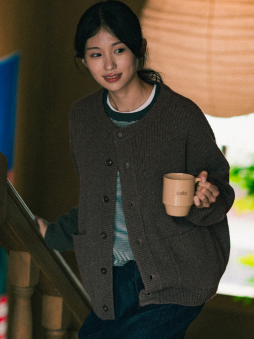 파인 울 라운드넥 가디건 (브라운)