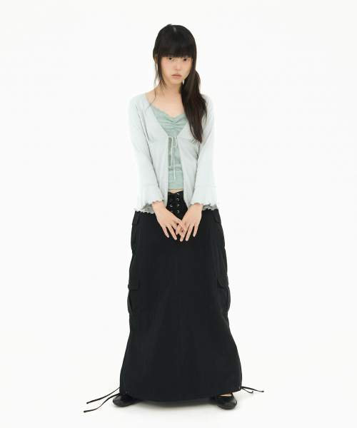 이매진 순면 모달 컷아웃 골지 가디건 - 블루