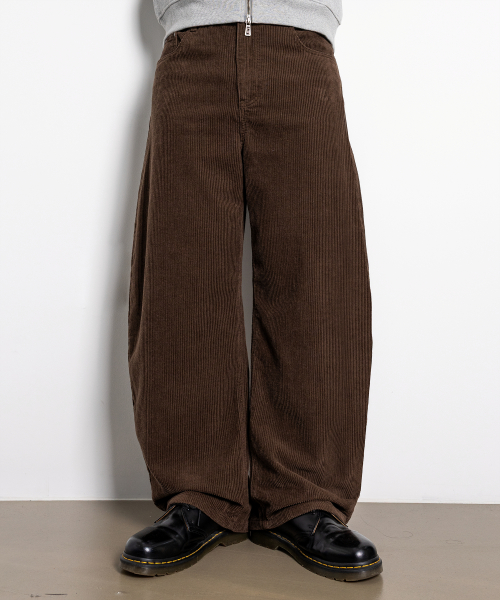 에센셜 페이드 워싱 커브드 팬츠_코듀로이 브라운