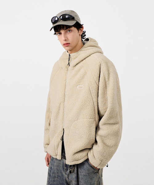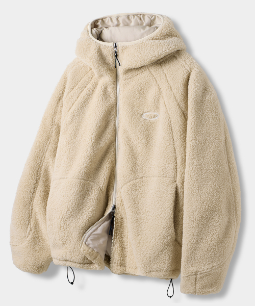 바라클라바 슬래쉬 후드 집업_쉐르파 플리스 베이지