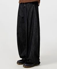 원턱 커브드 크리즈 워싱 와이드 데님 팬츠_슬럽 블랙